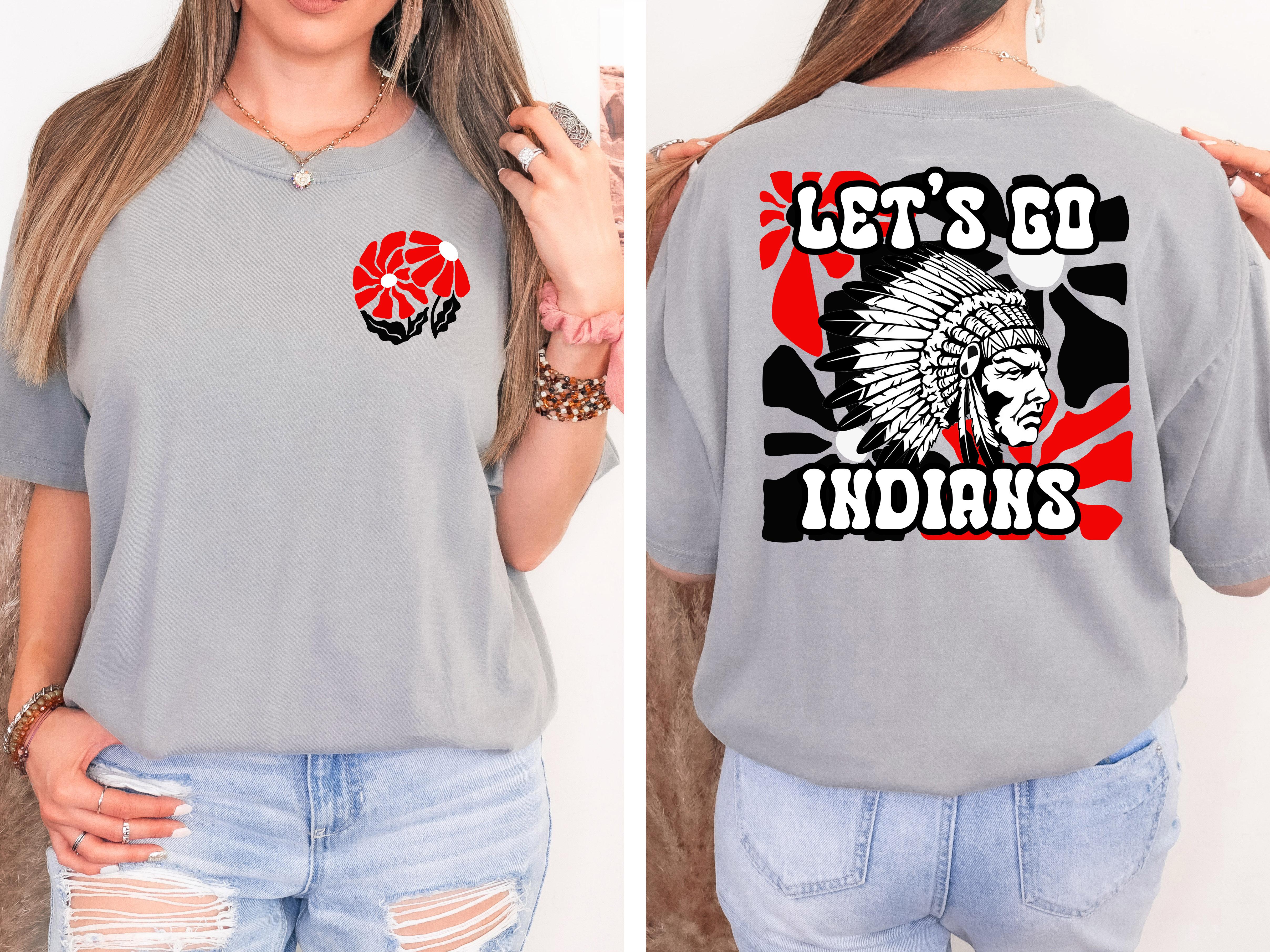 Let's Go Indians Floral DTF Print