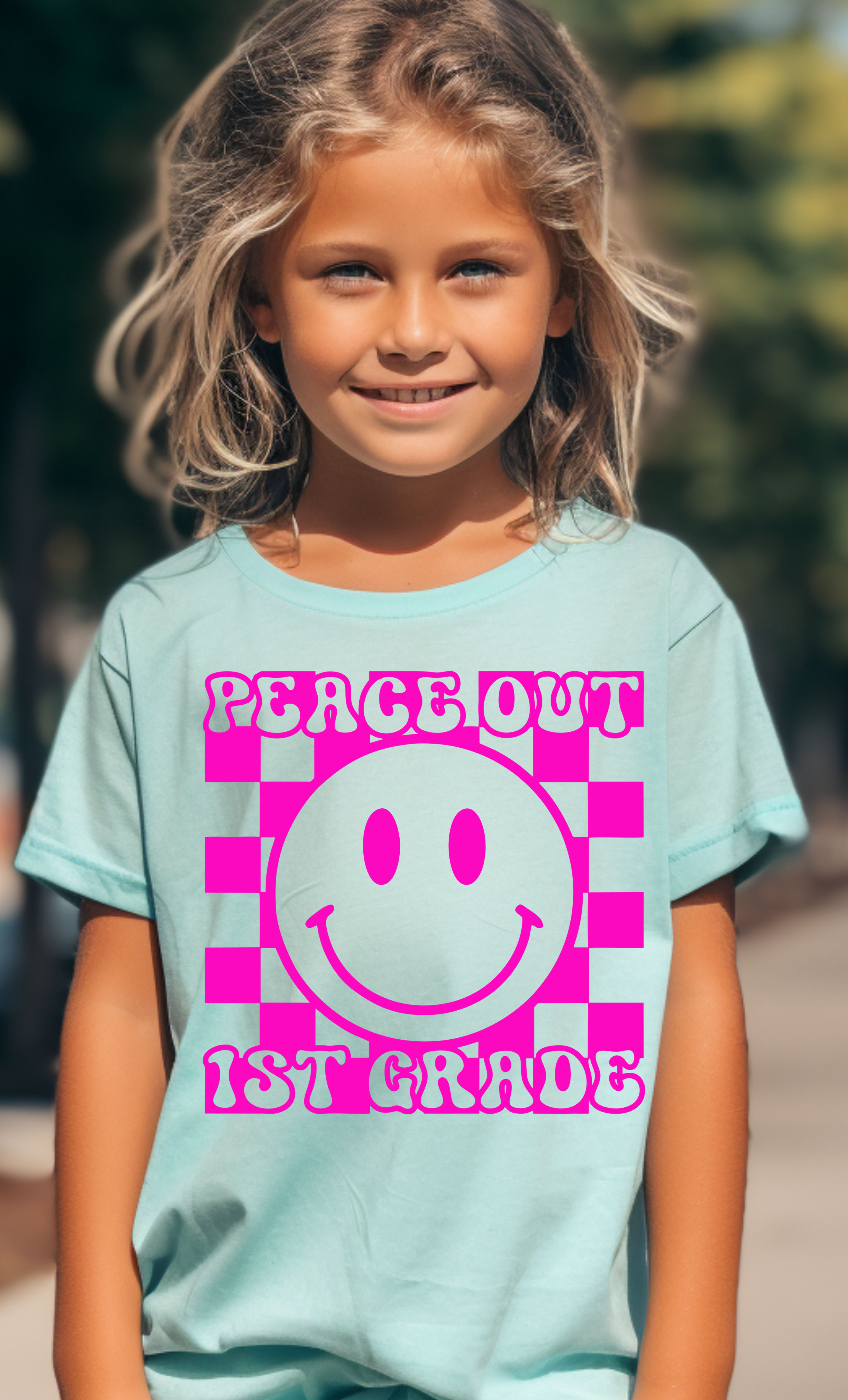 Peace Out Checkered Grades PINK DTF Print