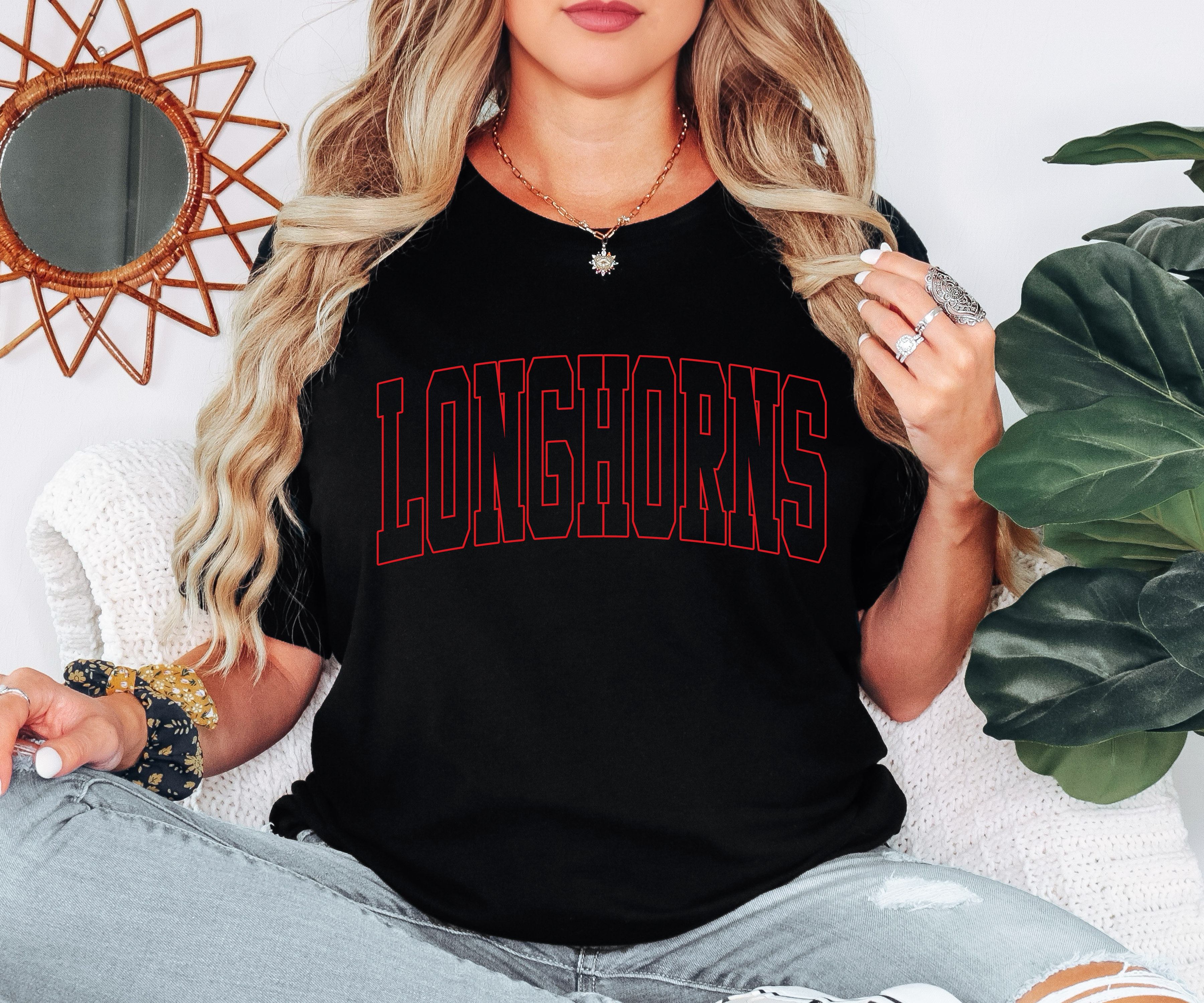 Longhorns Unisex Shadow Team Black and White DTF Print