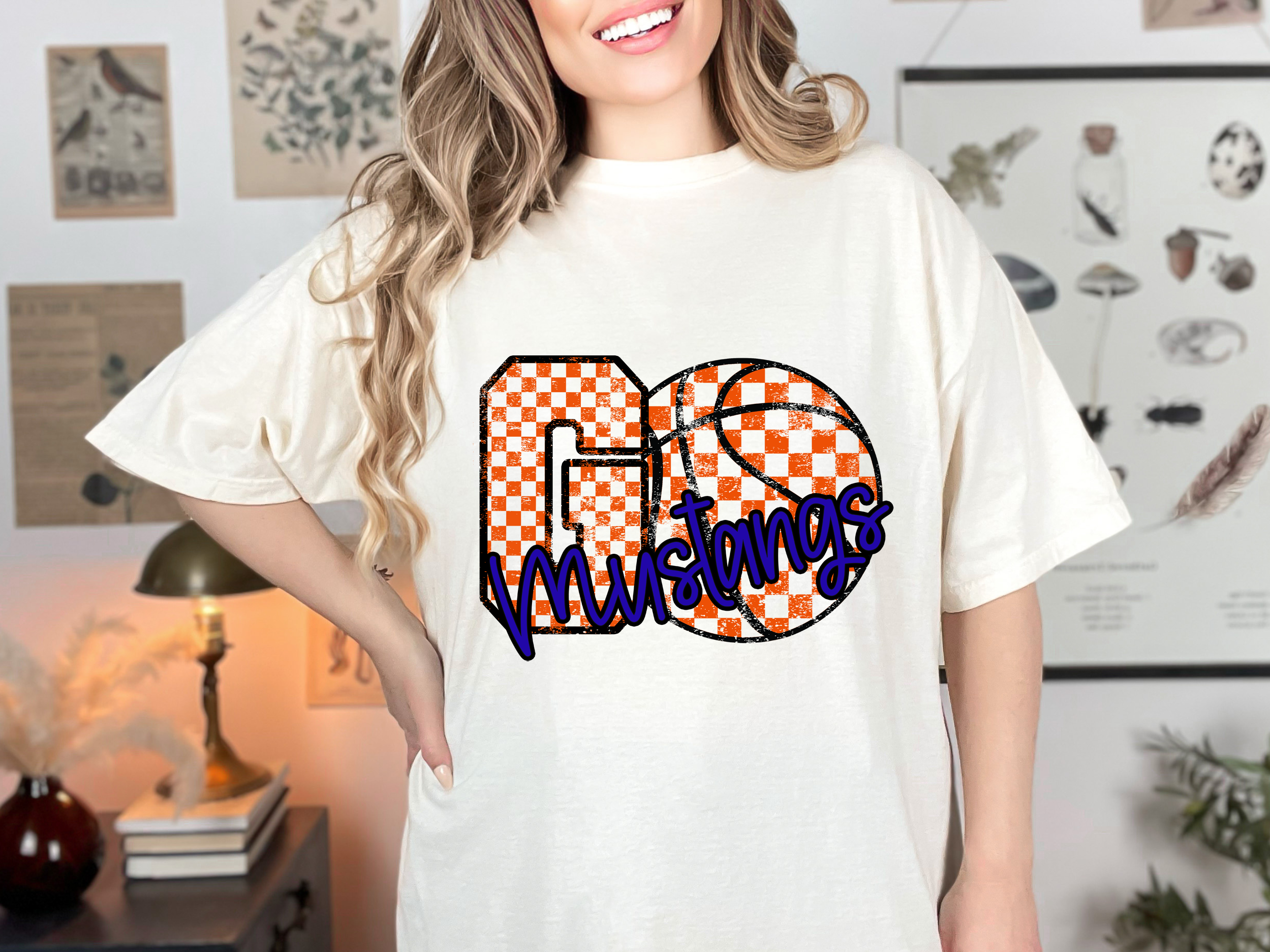 Mustangs Go Basketball Checker DTF Print