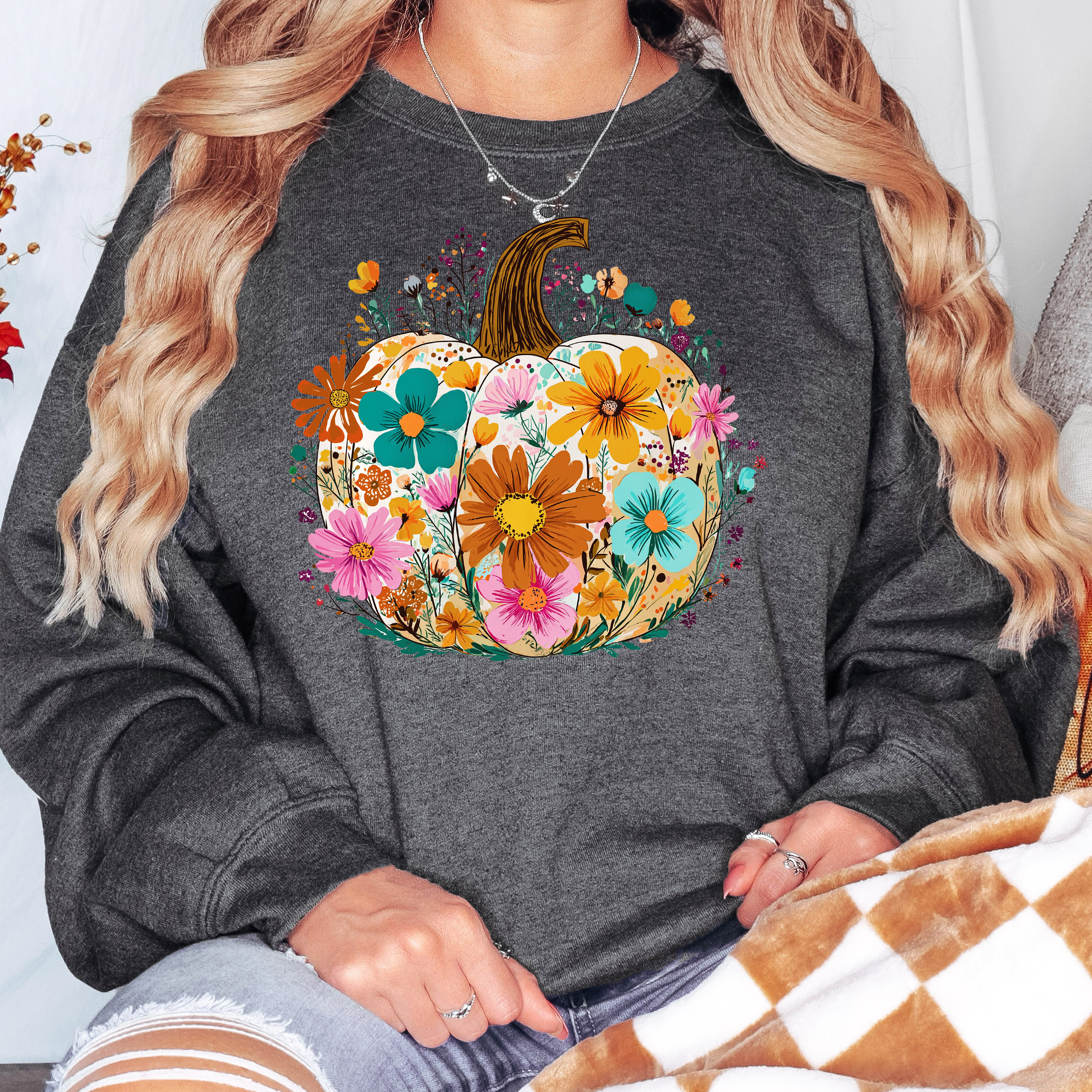 Fall Boho Floral Pumpkin DTF Print