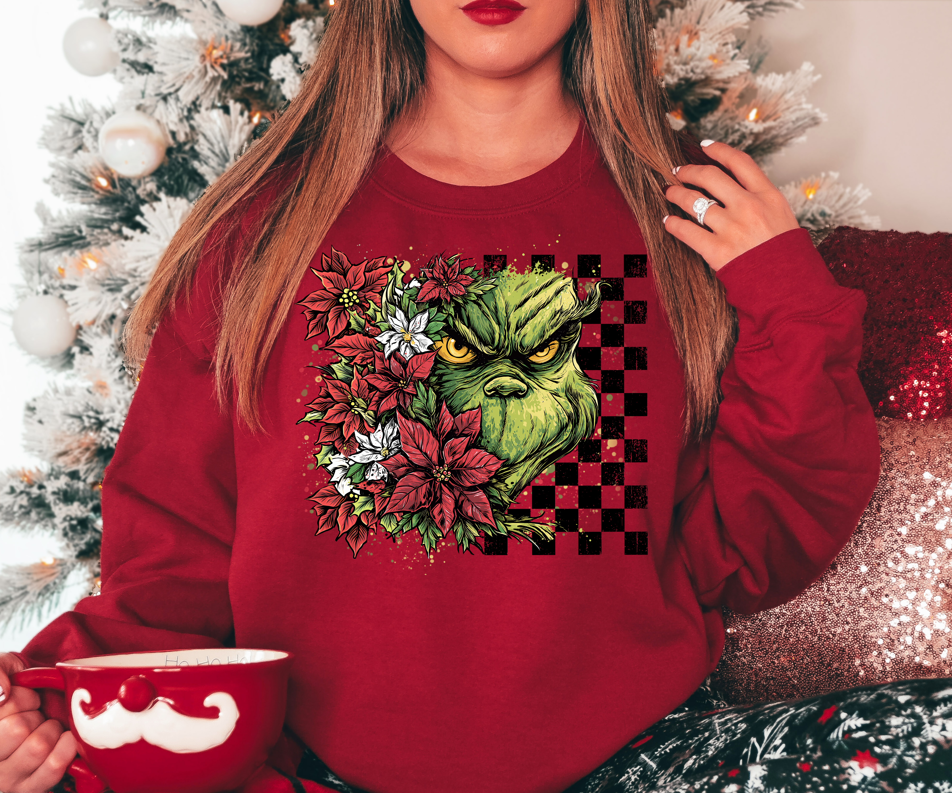 Floral Checker Grinch DTF Print