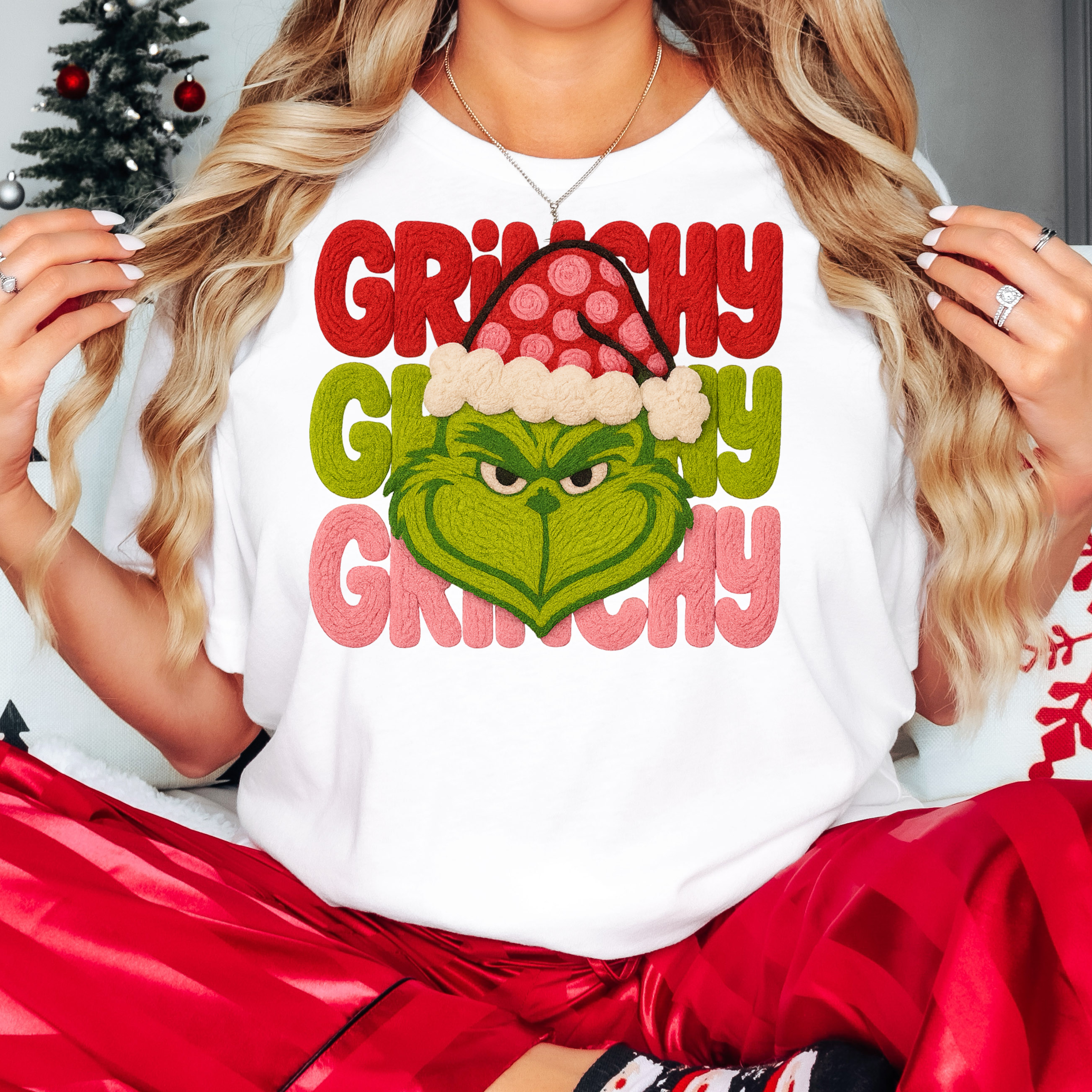 Grinchy Faux Yarn DTF Print