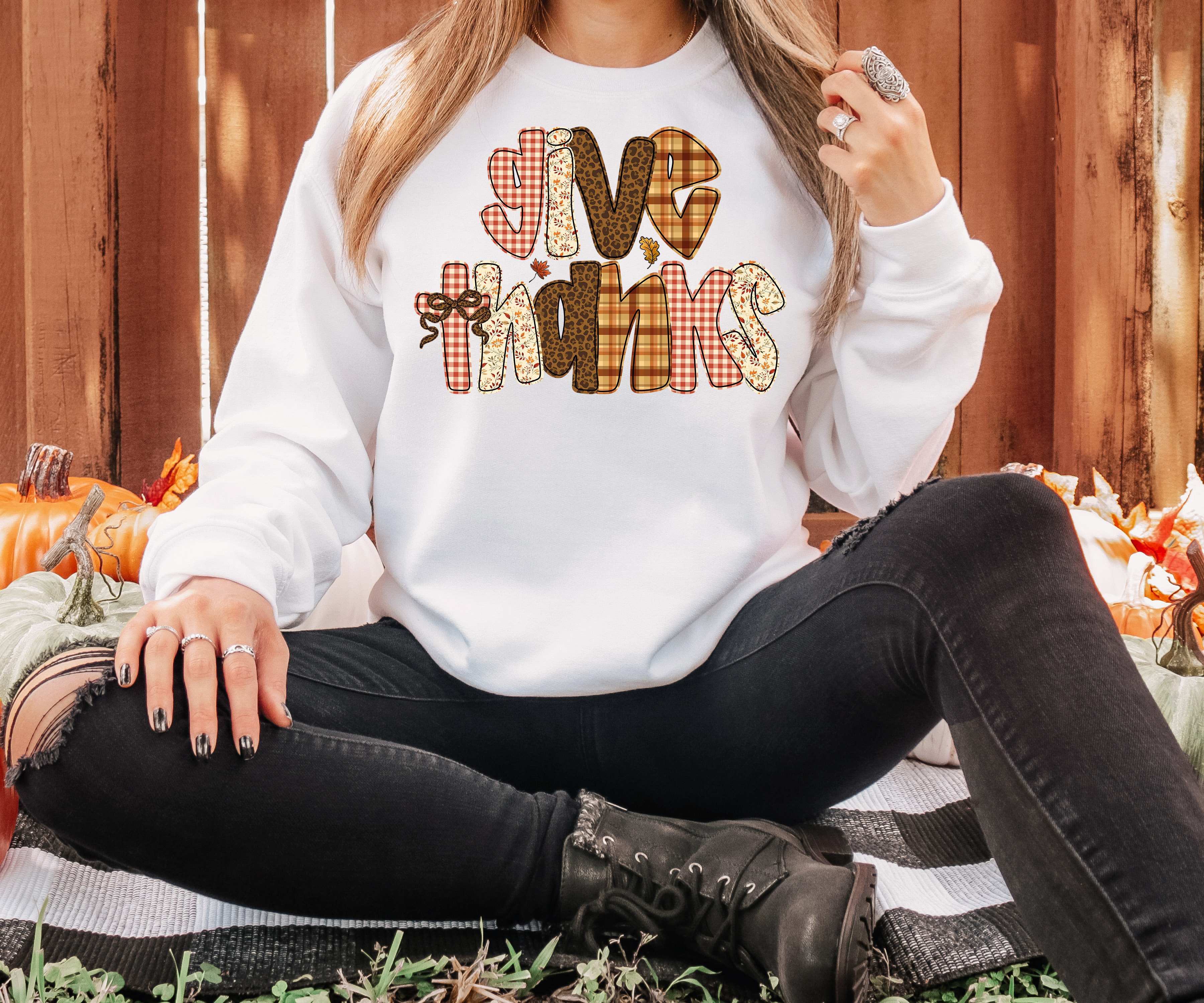 Give Thanks Plaid Leopard Fall DTF Print