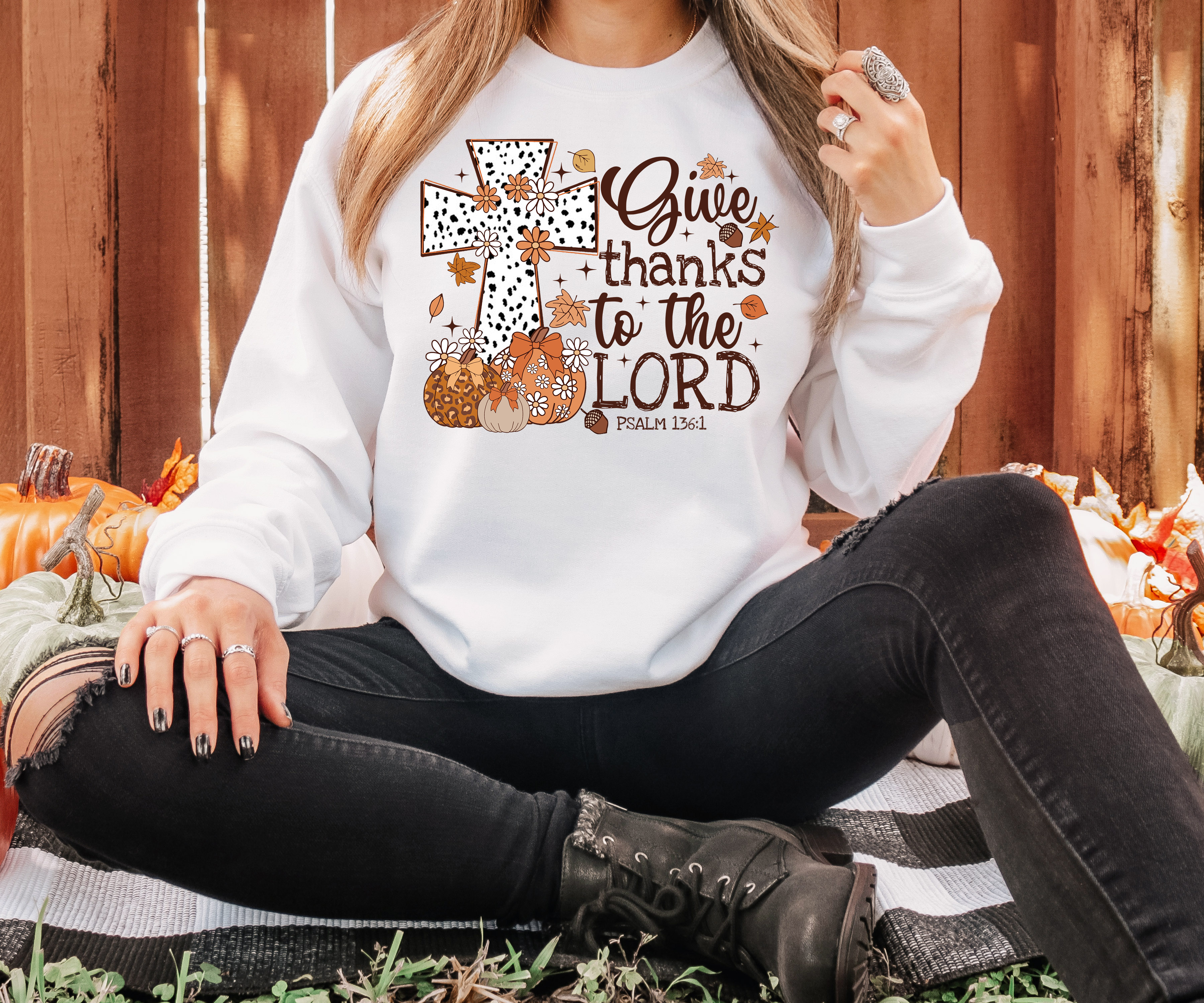 Give Thanks To the Lord Fall Cross DTF Print