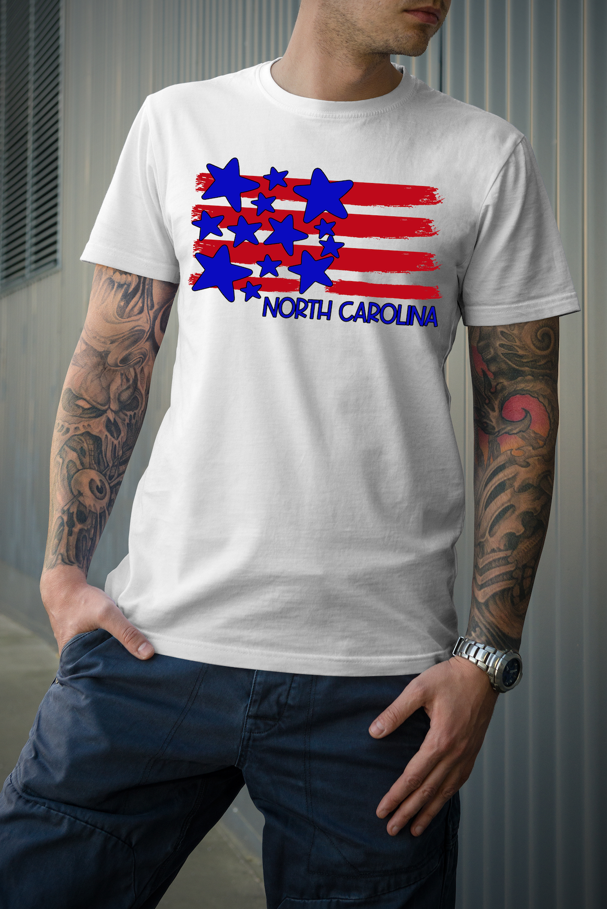 North Carolina Plain Flag with Stars and Stripes DTF Print