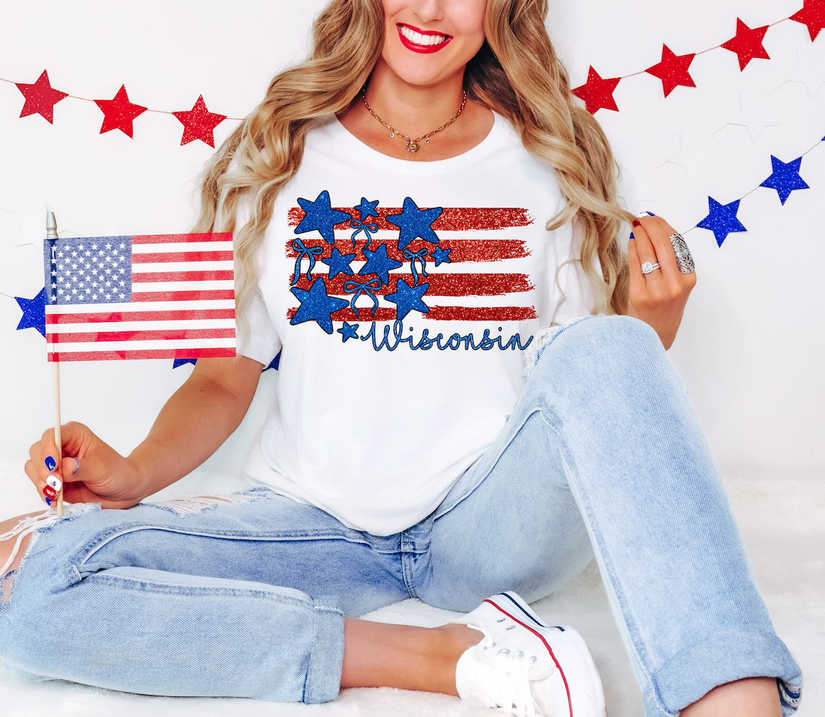 Wisconsin Brush Stroke Flag and Bows DTF Print