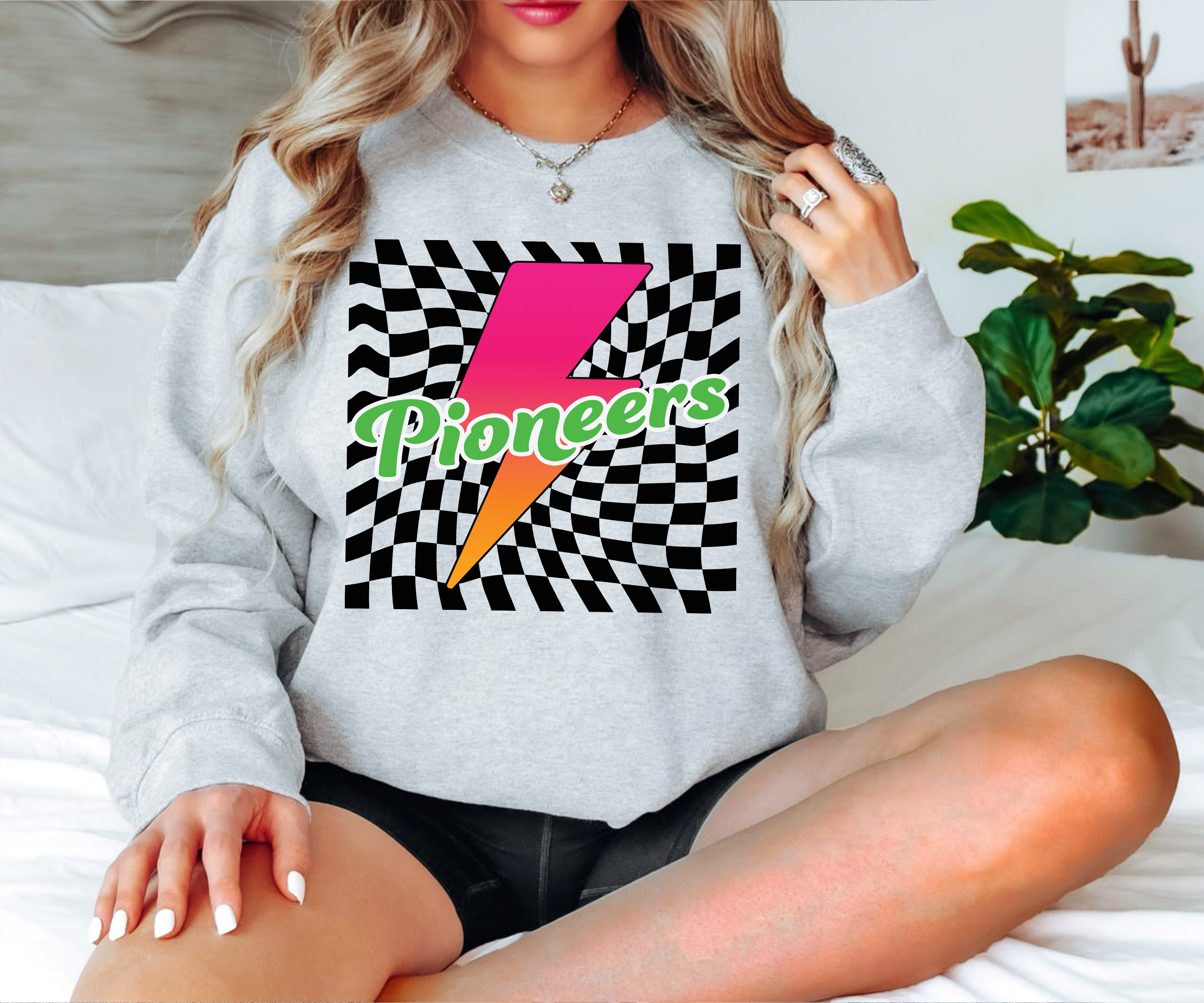 Pioneers Retro Bolt Checker Teams Neon Outline DTF Print