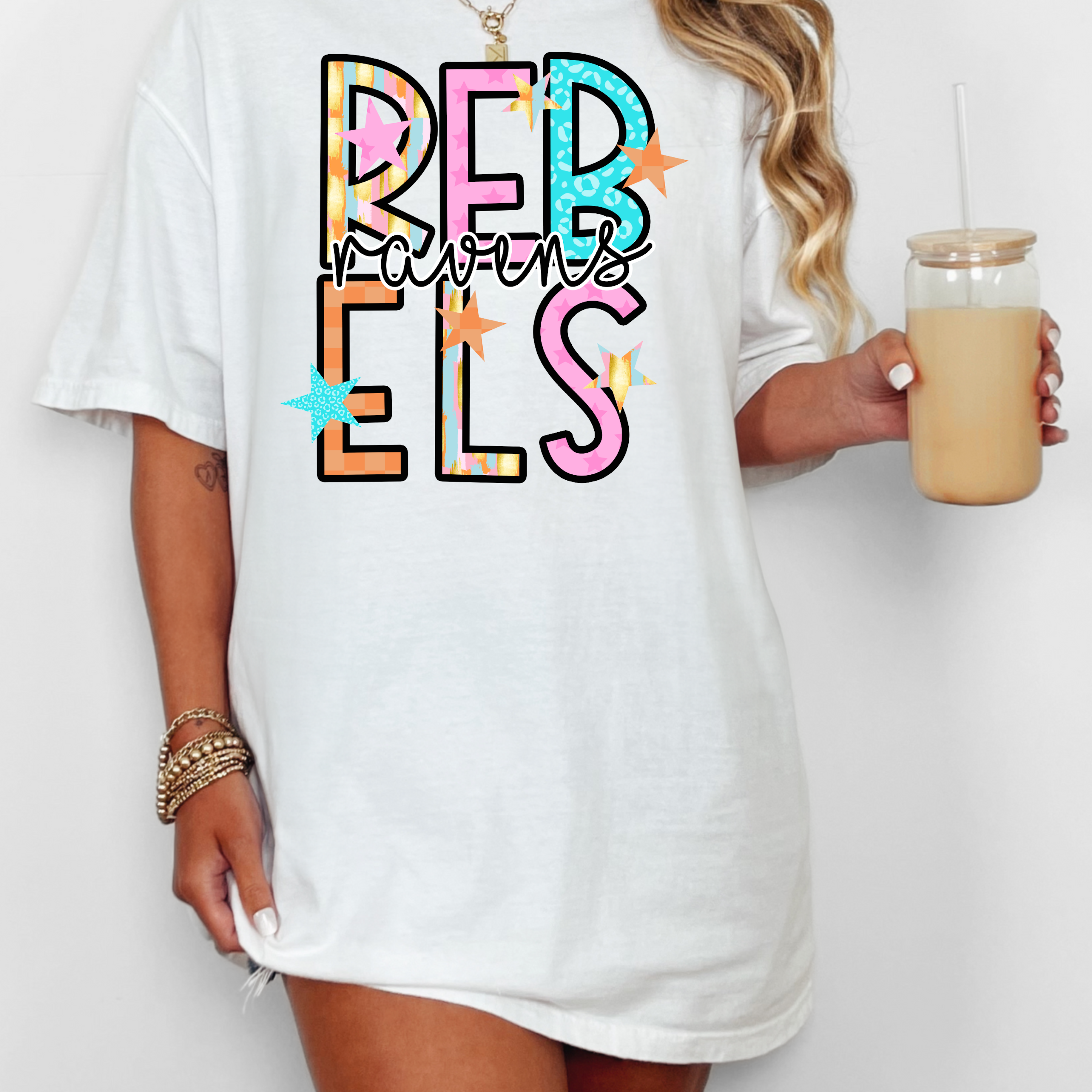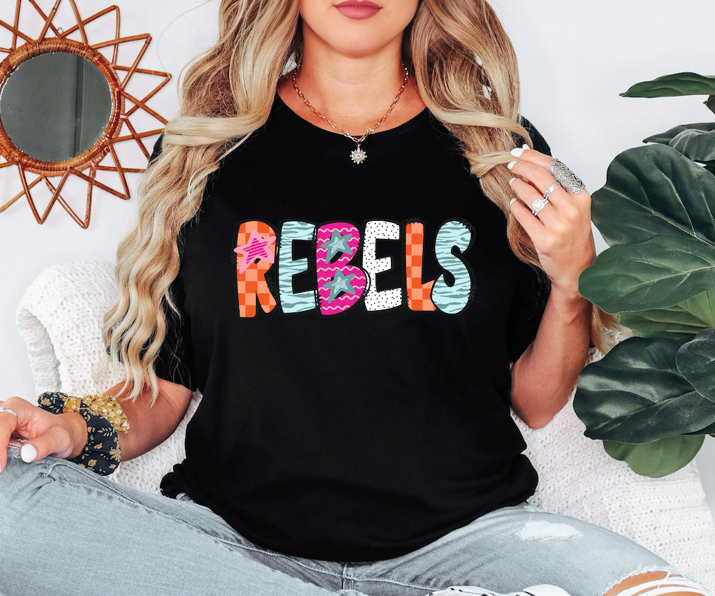 Rebels Retro Bolt Checker Teams Neon Outline DTF Print