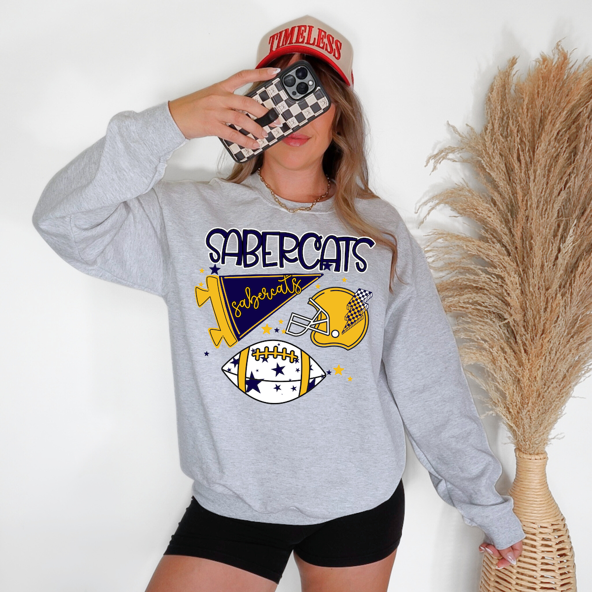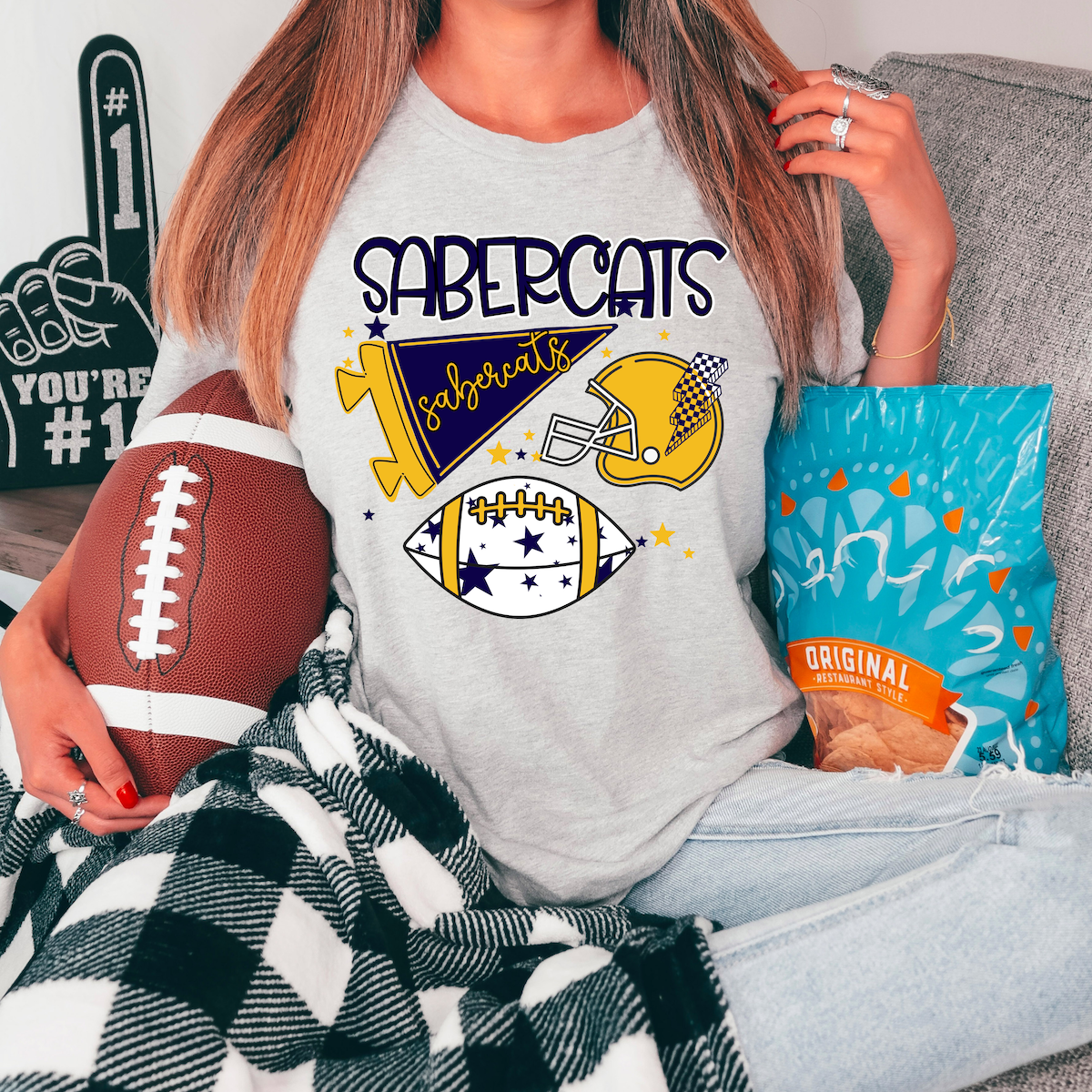 Sabercats Retro Bolt Checker Teams Neon Outline DTF Print