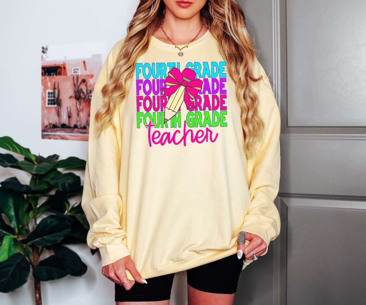 Back To School Repeat Neon Pink Pencil Elementary Teacher DTF Print