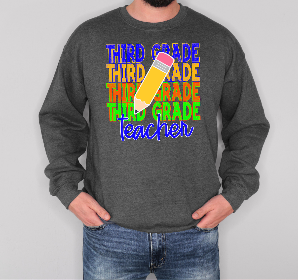 Back To School Repeat Solid Pencil Elementary Teacher DTF Print