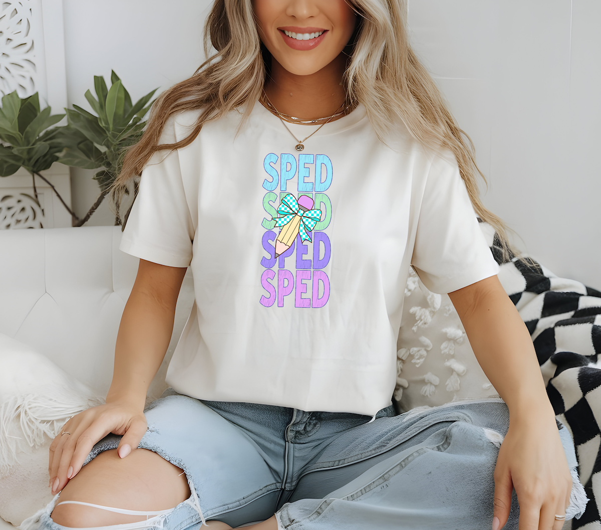 SPED Bookworm Repeat Checker Pencil DTF Print