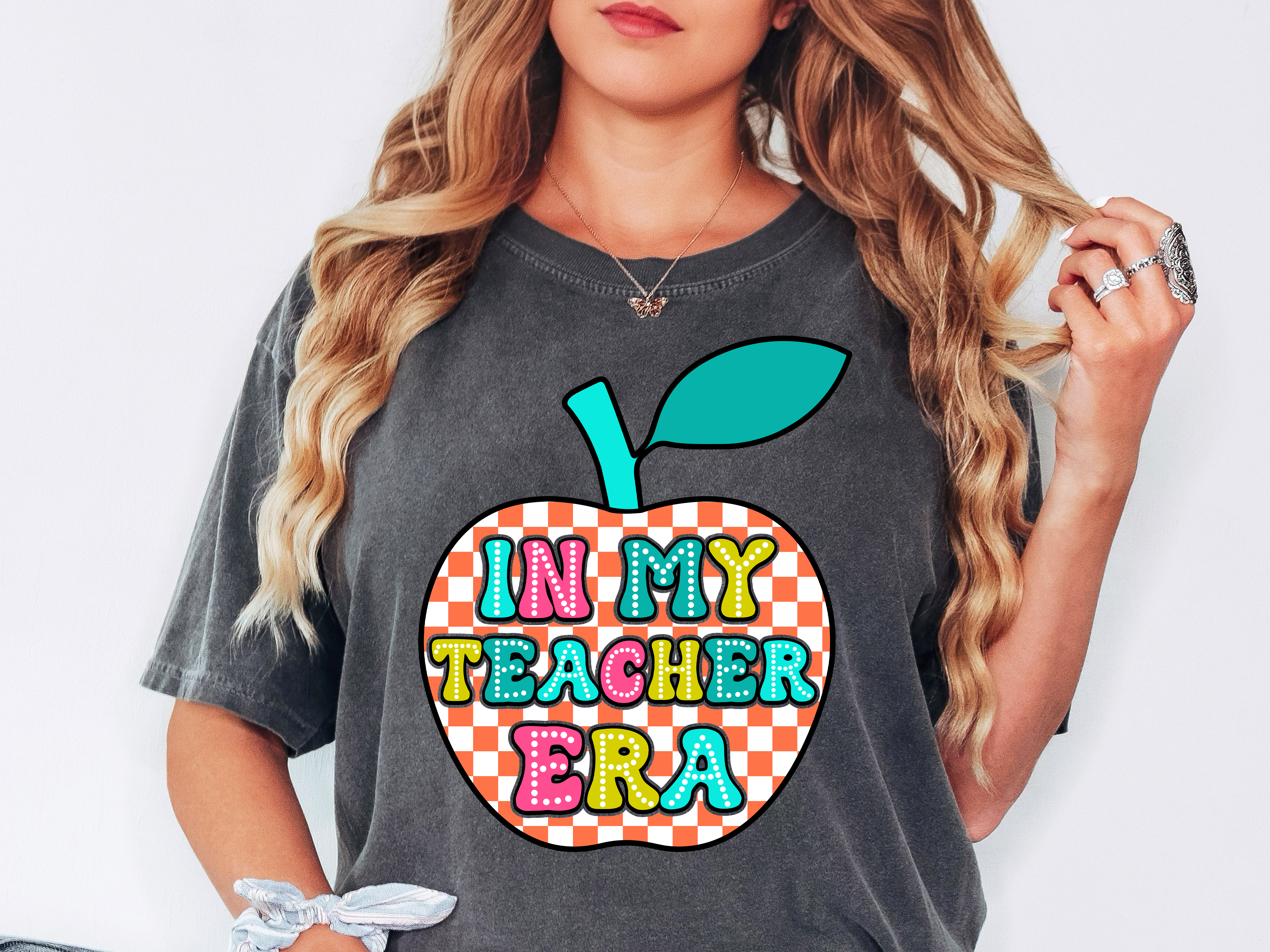In My Teacher Era Apple Neon Doodle DTF Print