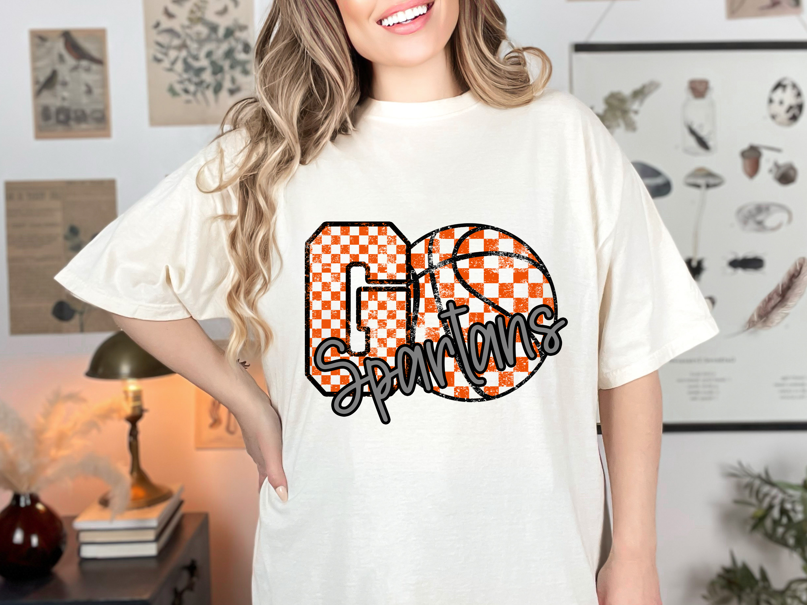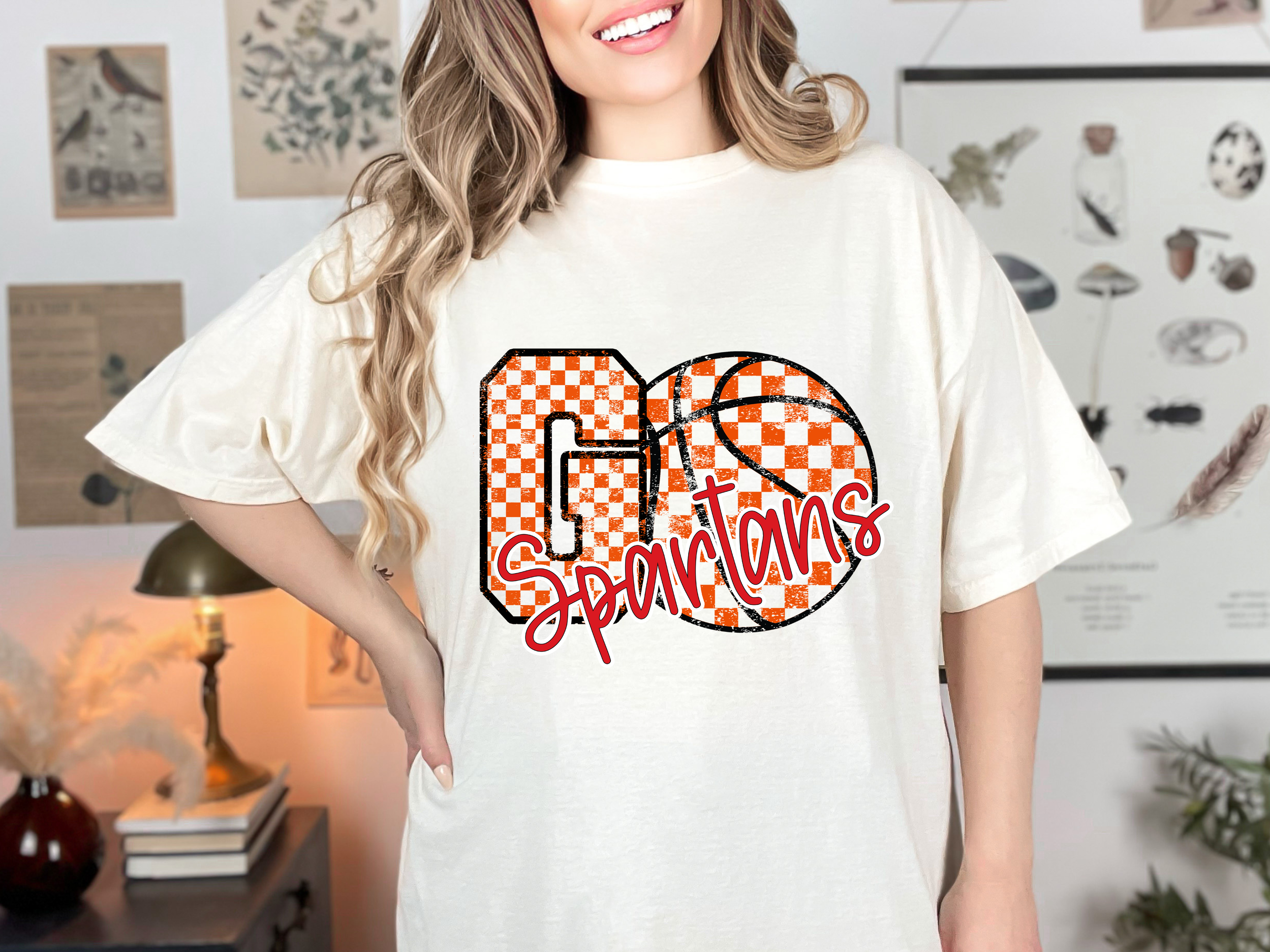 Spartans Go Basketball Checker DTF Print