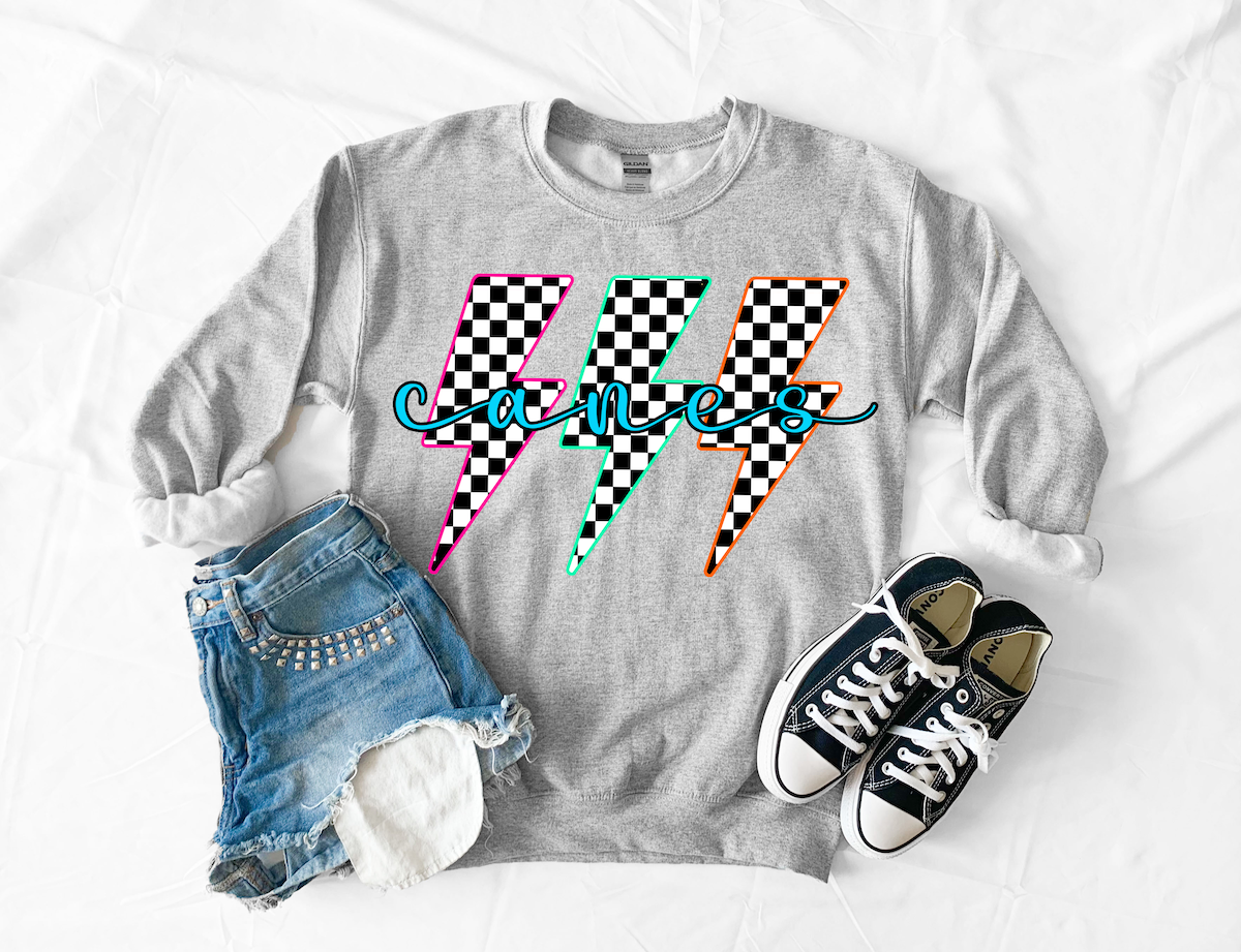 Canes Retro Bolt Checker Teams Neon Outlines DTF Print