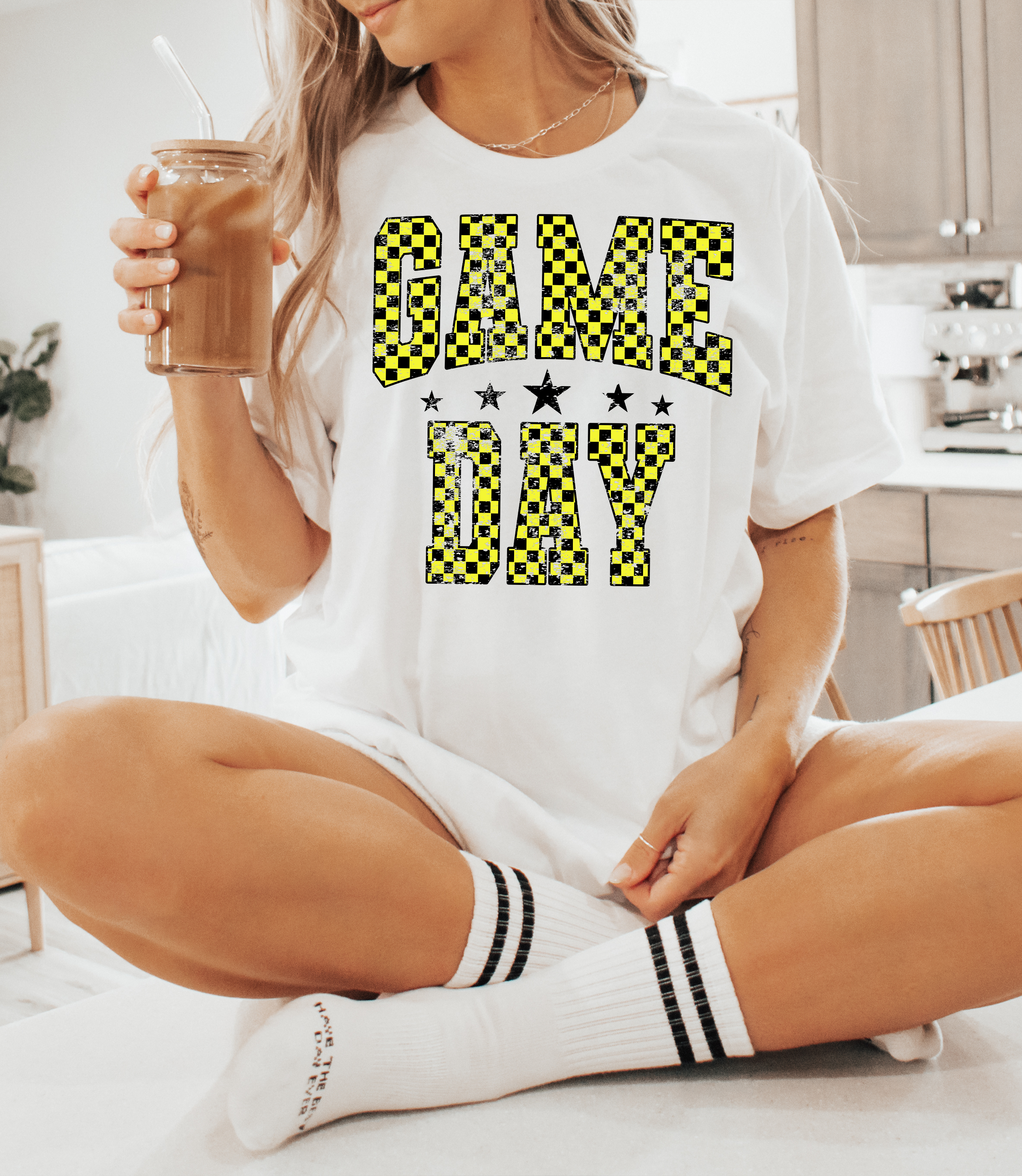 Checker Game Day Yellow DTF Print