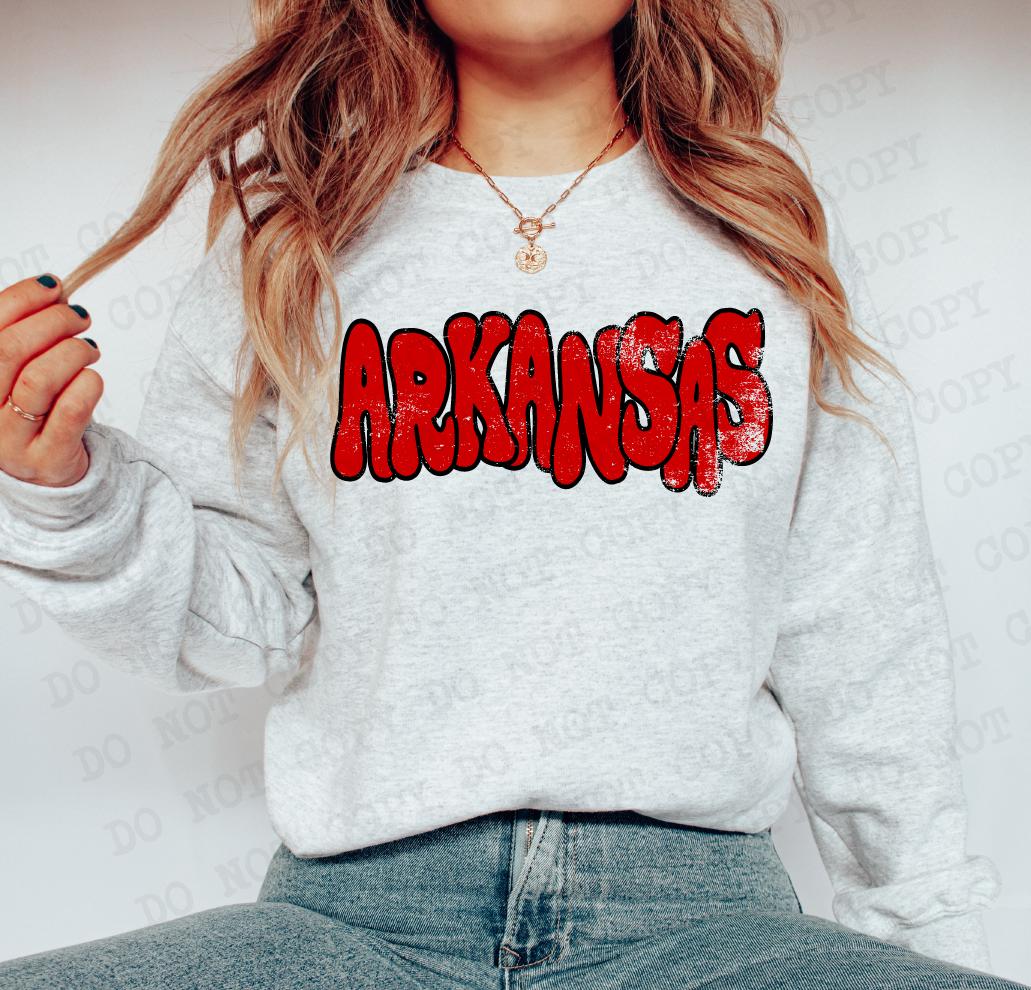 Distressed Wonky Arkansas Red Black DTF Print