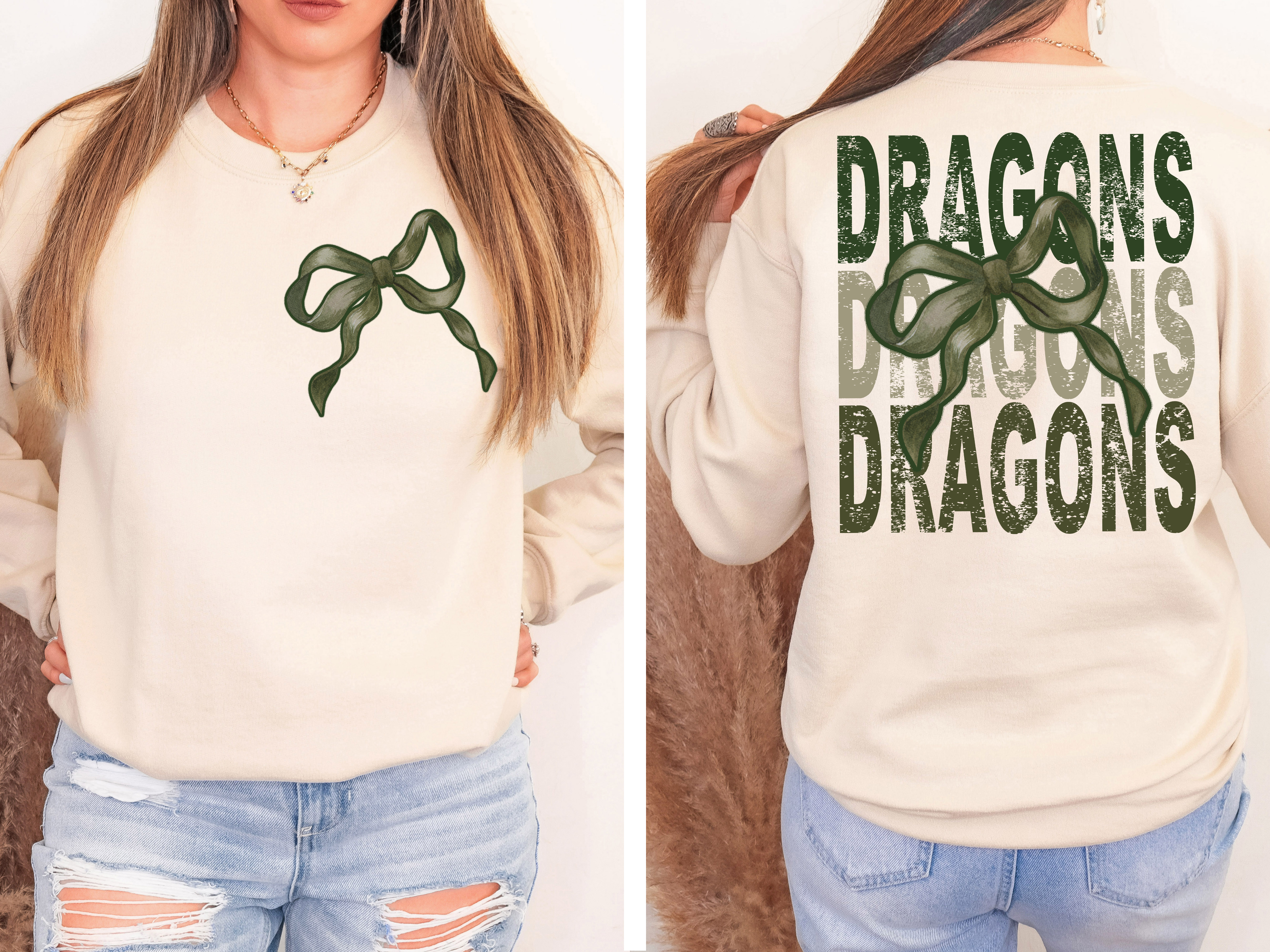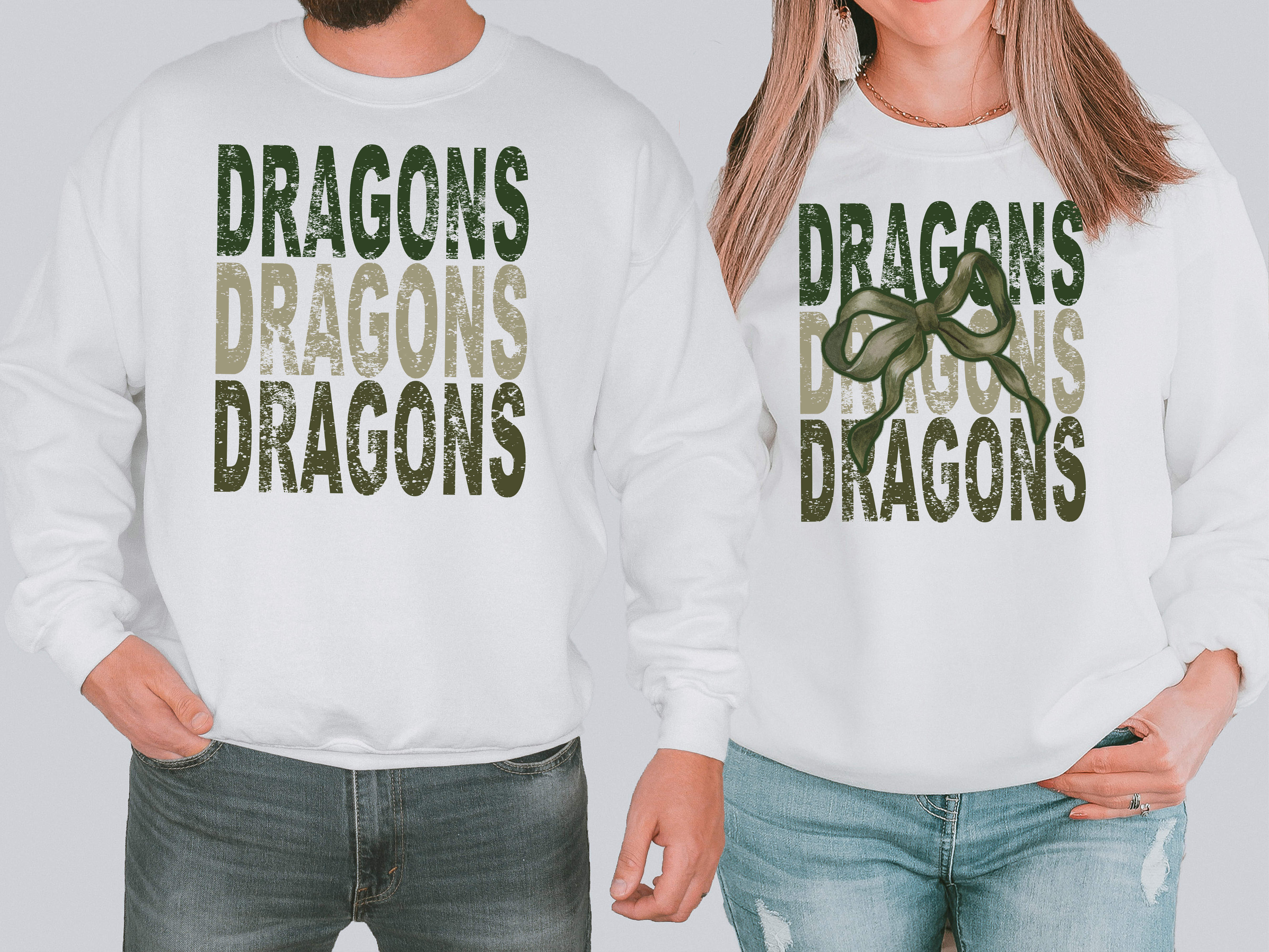 Dragons Matching Stacked Camo Greens DTF Print