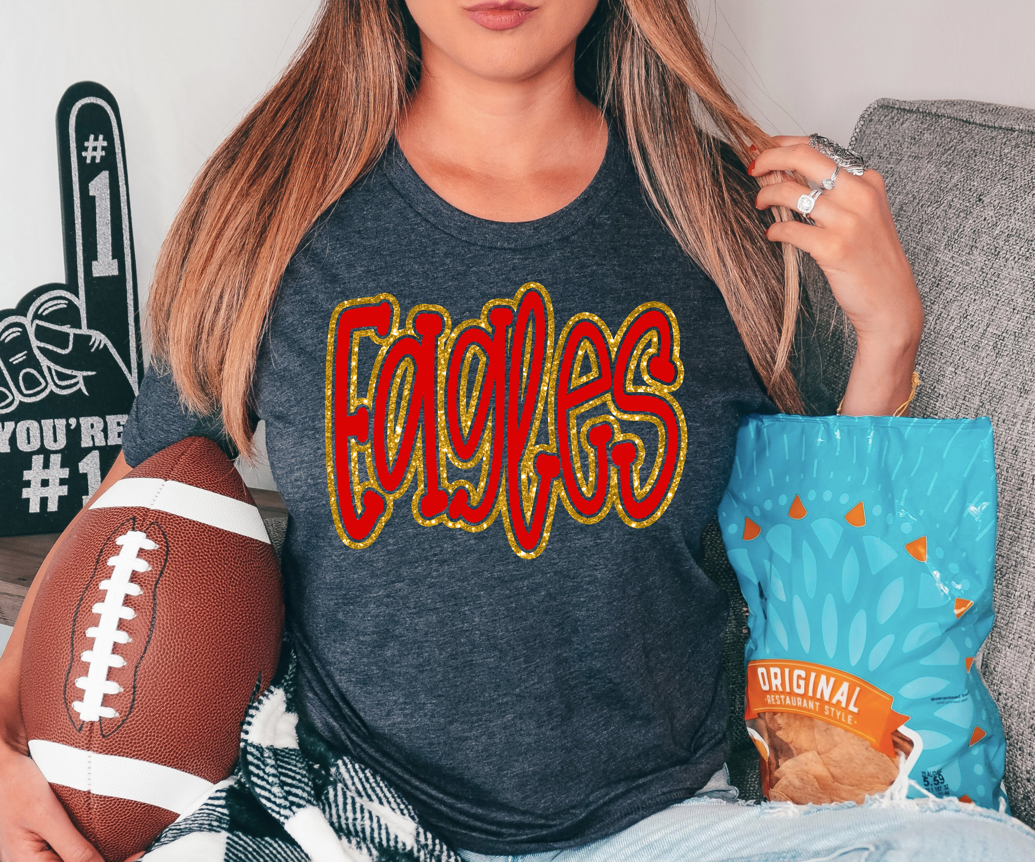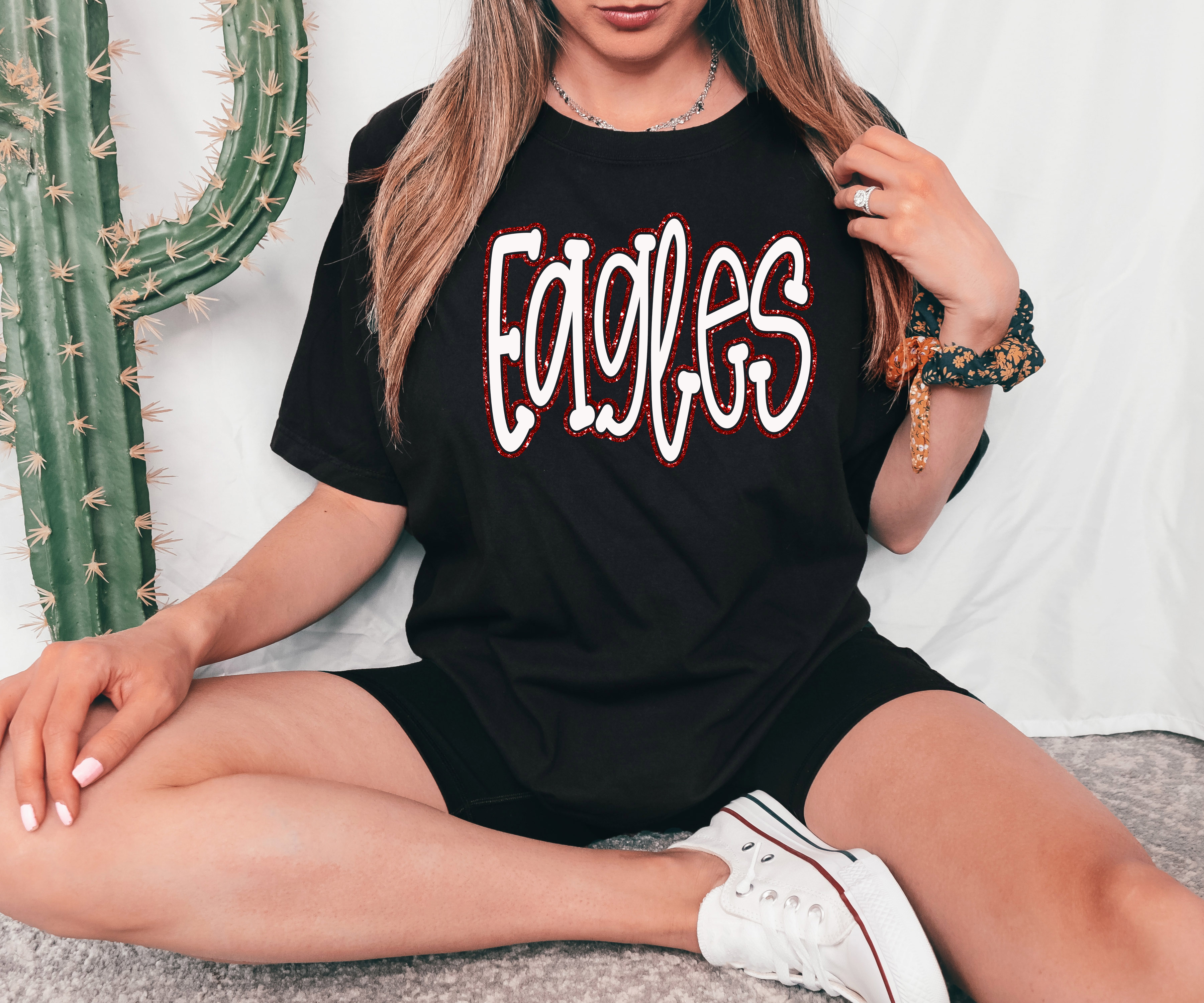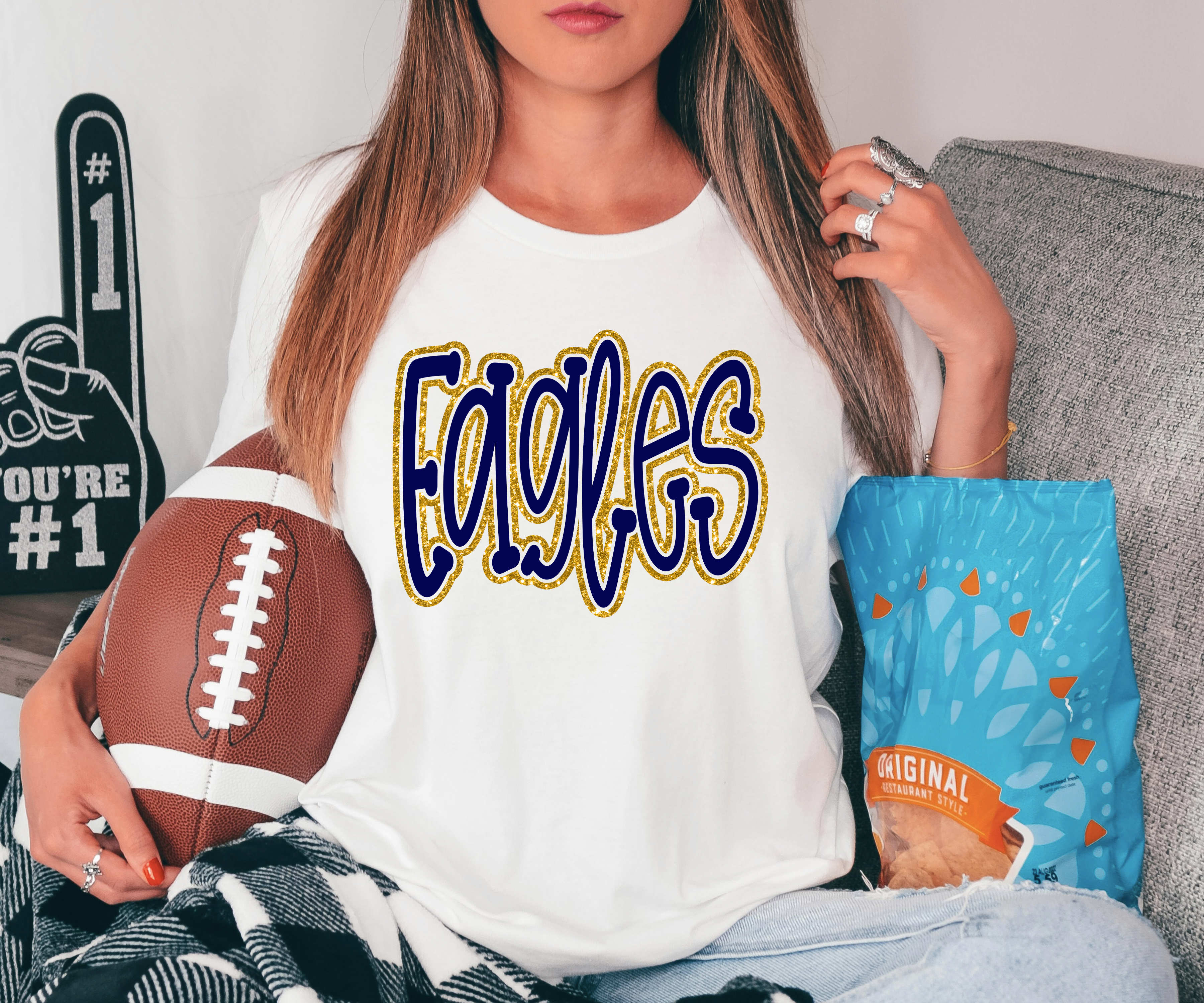 Funky Eagles Faux Glitter Outline DTF Print