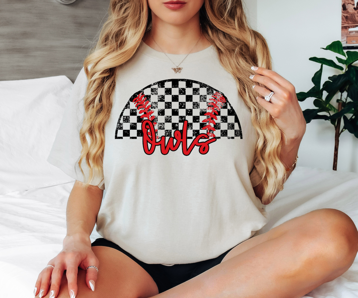 Owls Checker Baseball Custom Name DTF Print
