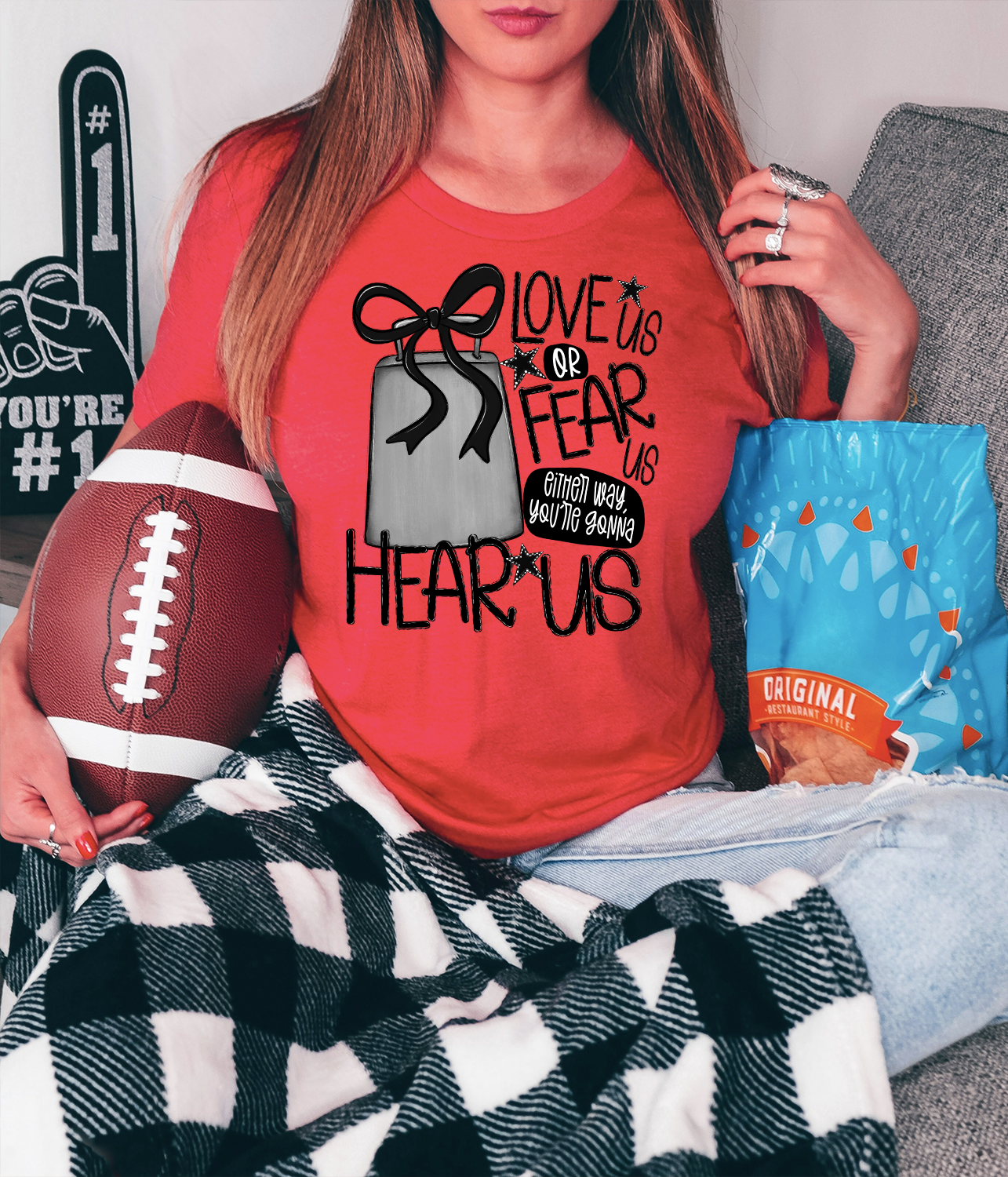 Love Us Or Fear Us Cow Bell Black DTF Print