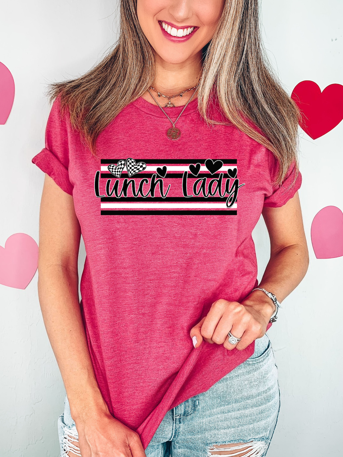 Lunch Lady Black and White Hearts DTF Print