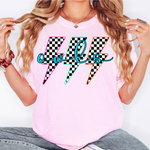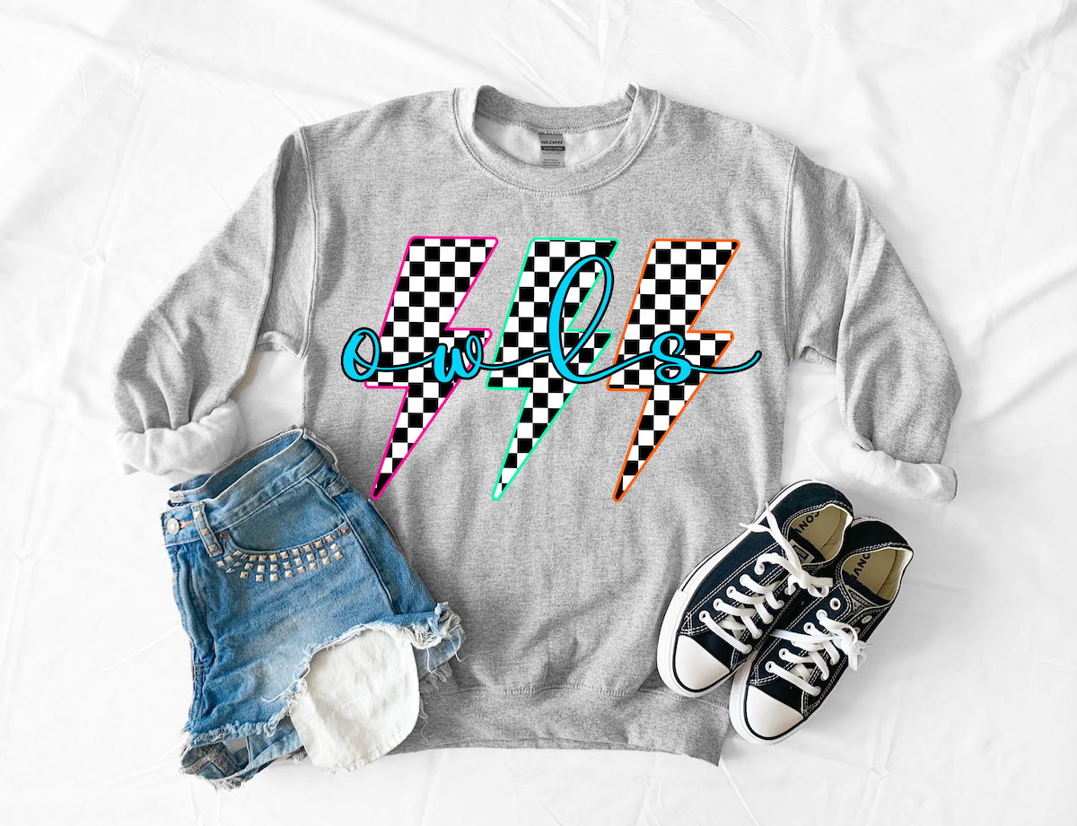 Owls Retro Bolt Checker Teams Neon Outline DTF Print