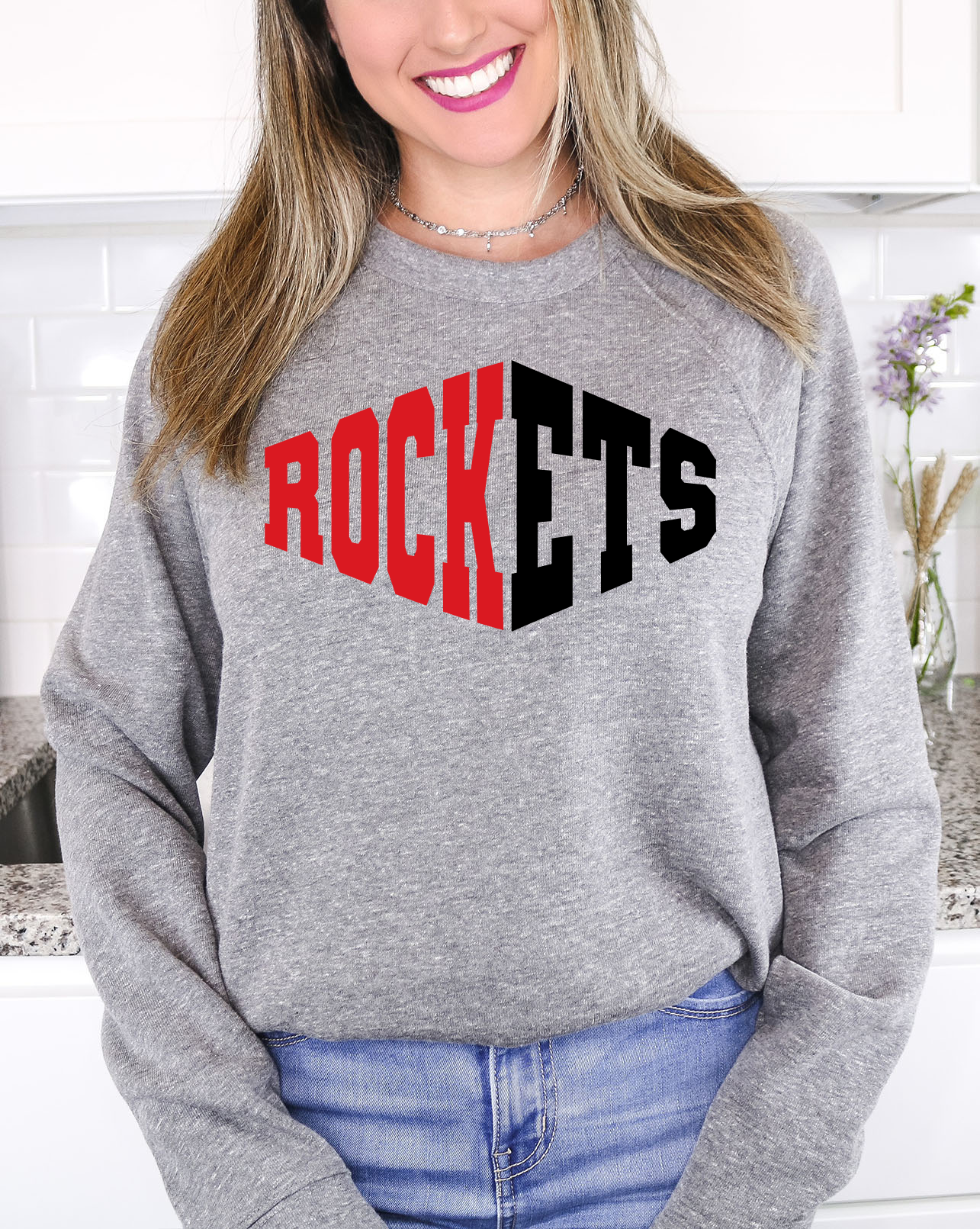 Rockets Warped Two Color Game Day DTF Print