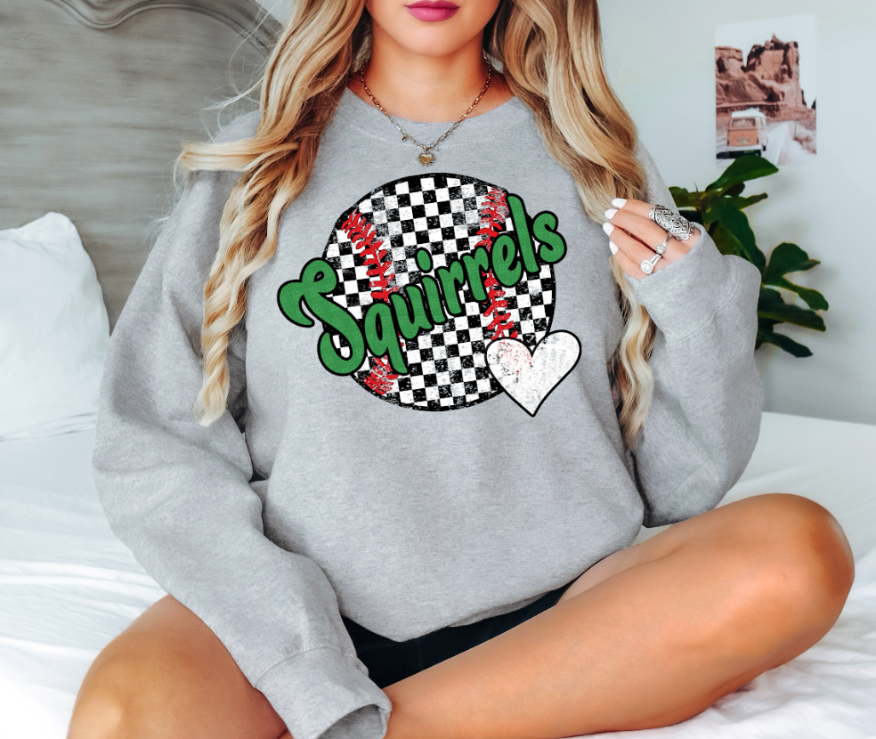 Squirrels Checker Baseball Heart DTF Print