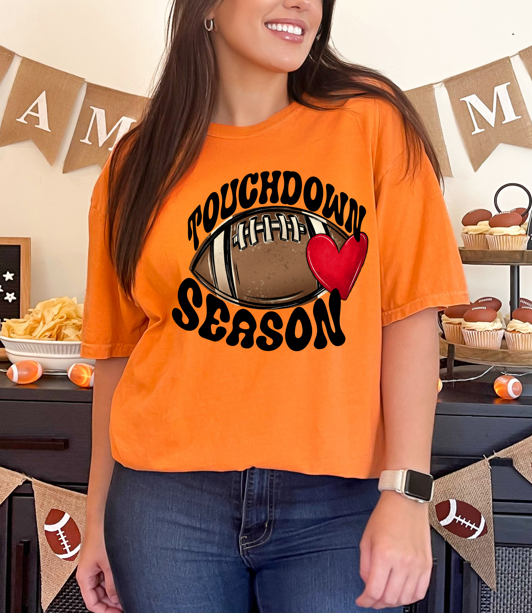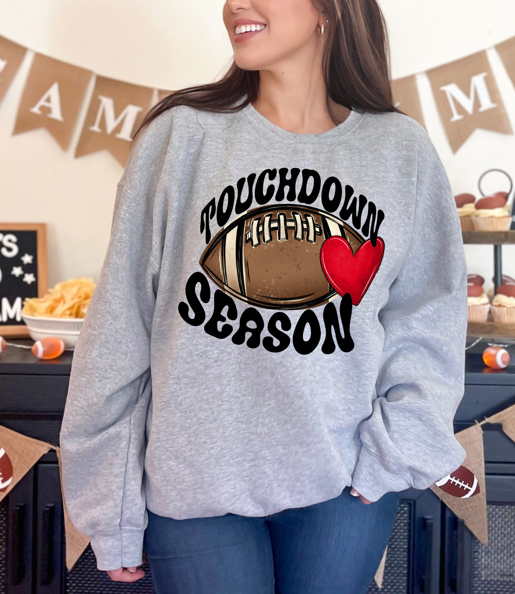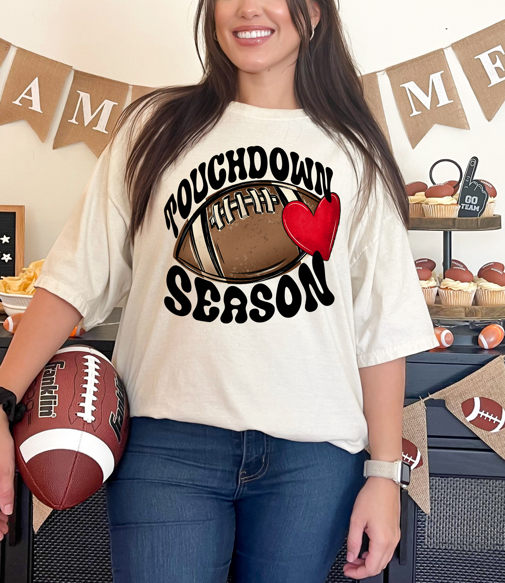 Touchdown Season Football With Heart DTF Print