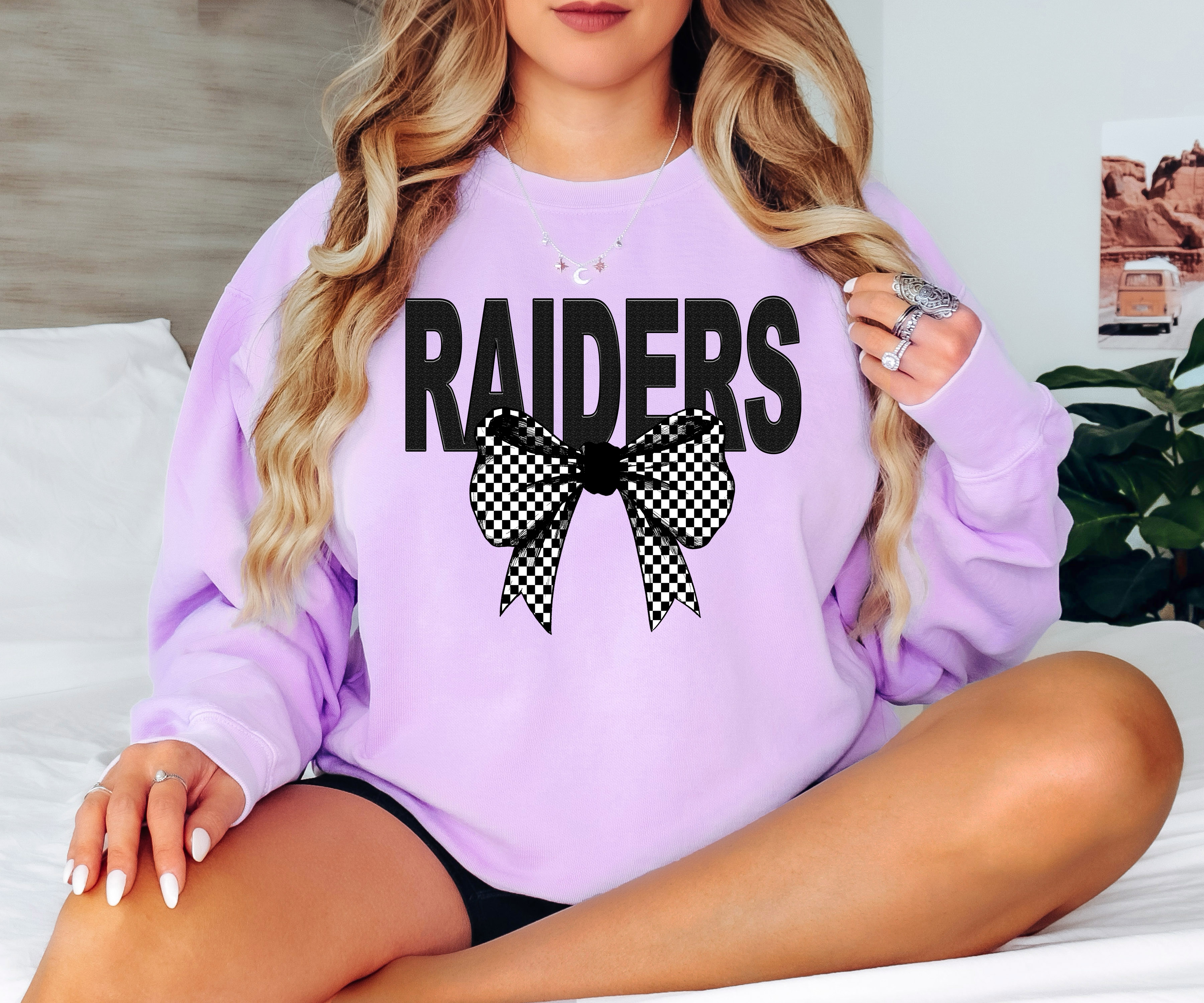 Raiders Coquette Checker Bow DTF Print