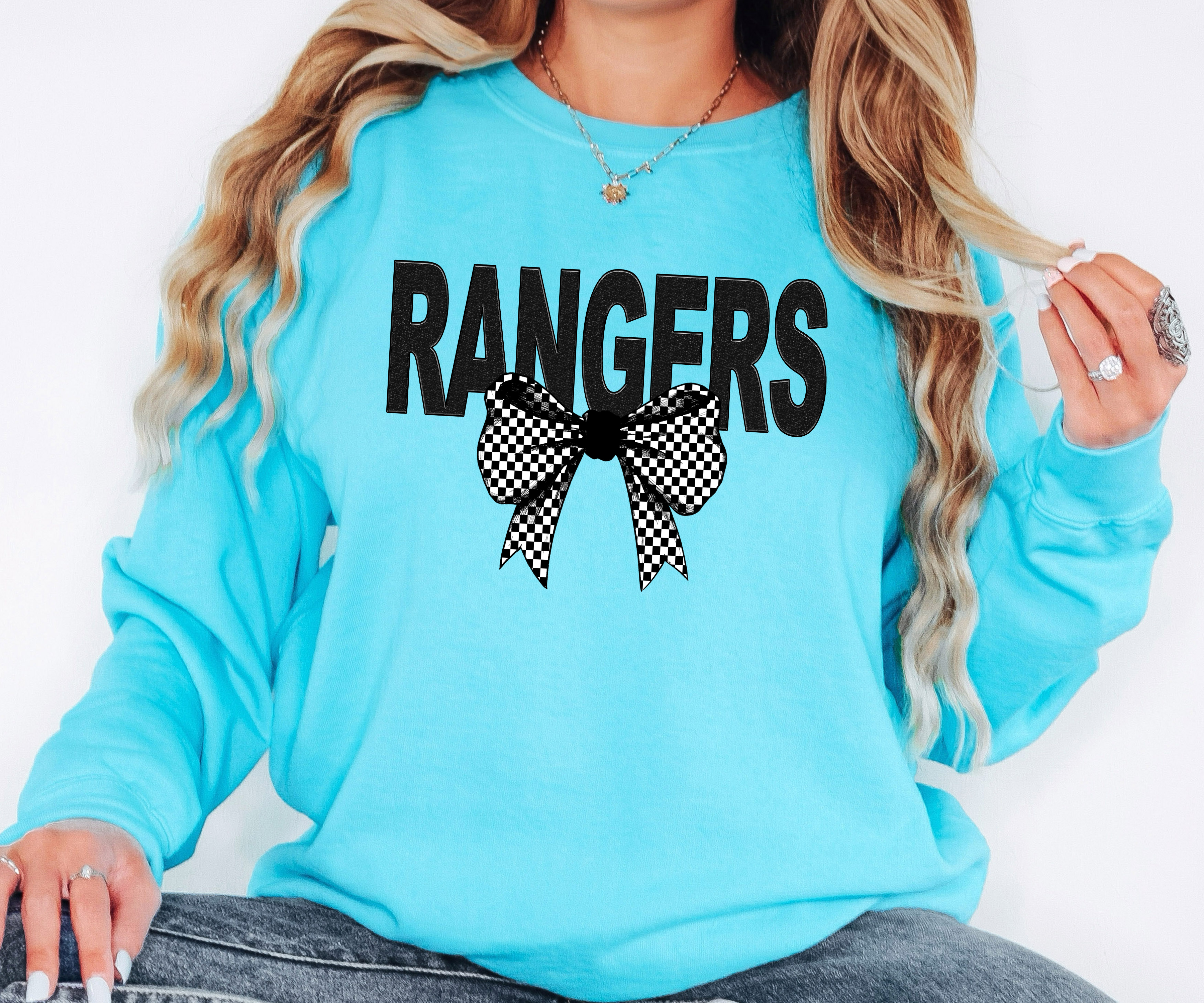 Rangers Coquette Checker Bow DTF Print