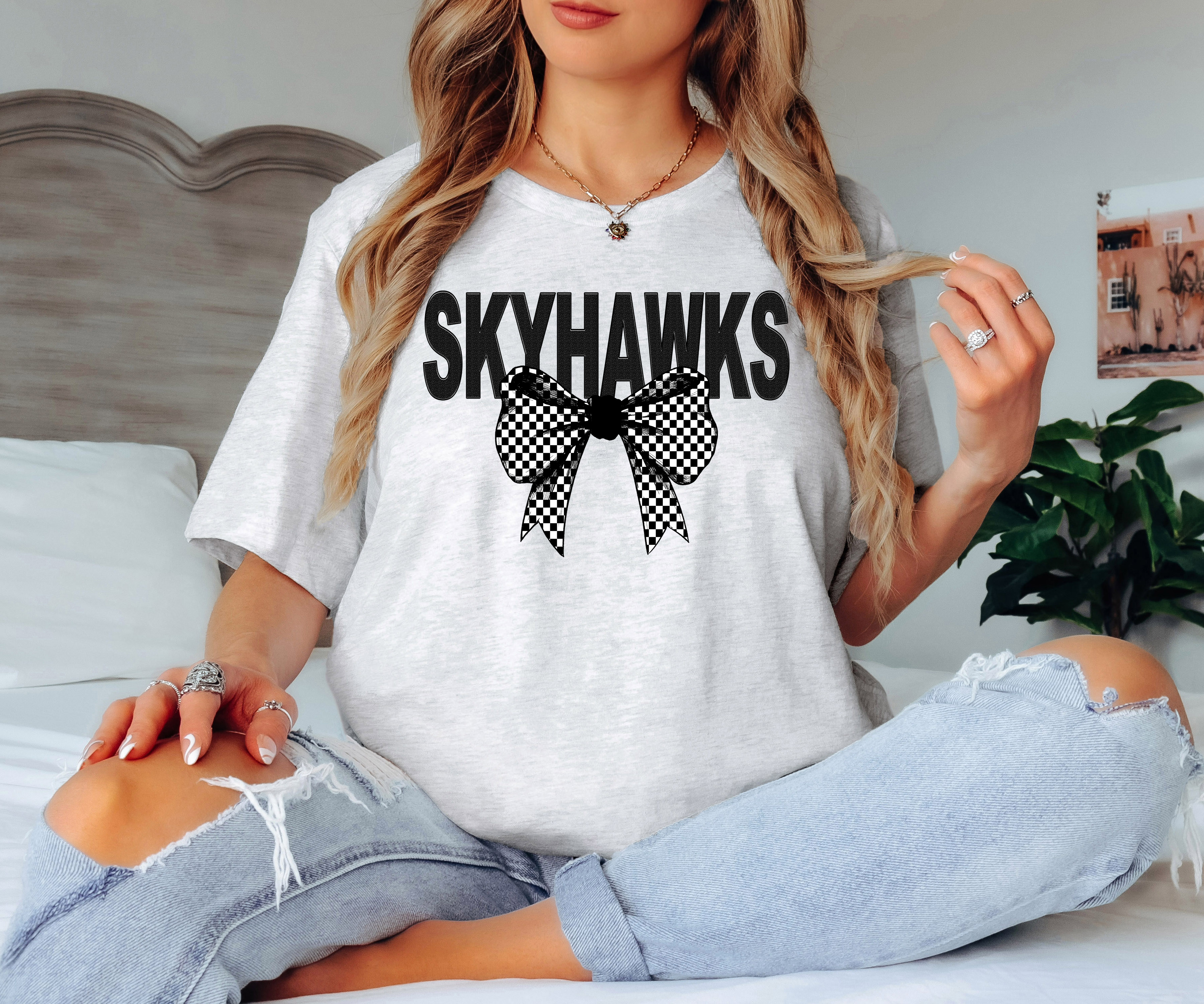 Skyhawks Coquette Checker Bow DTF Print