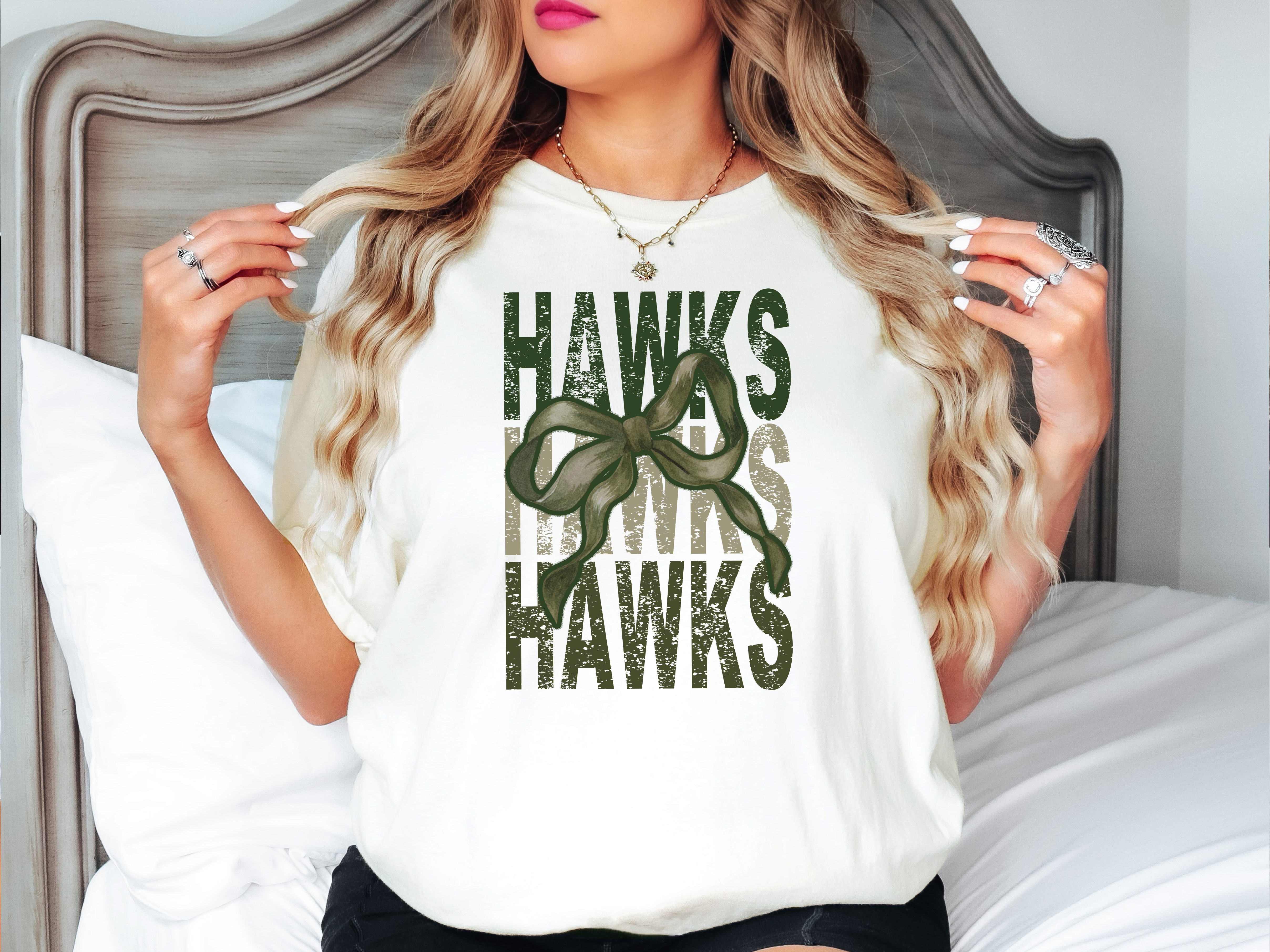 Hawks Matching Stacked Camo Greens DTF Print