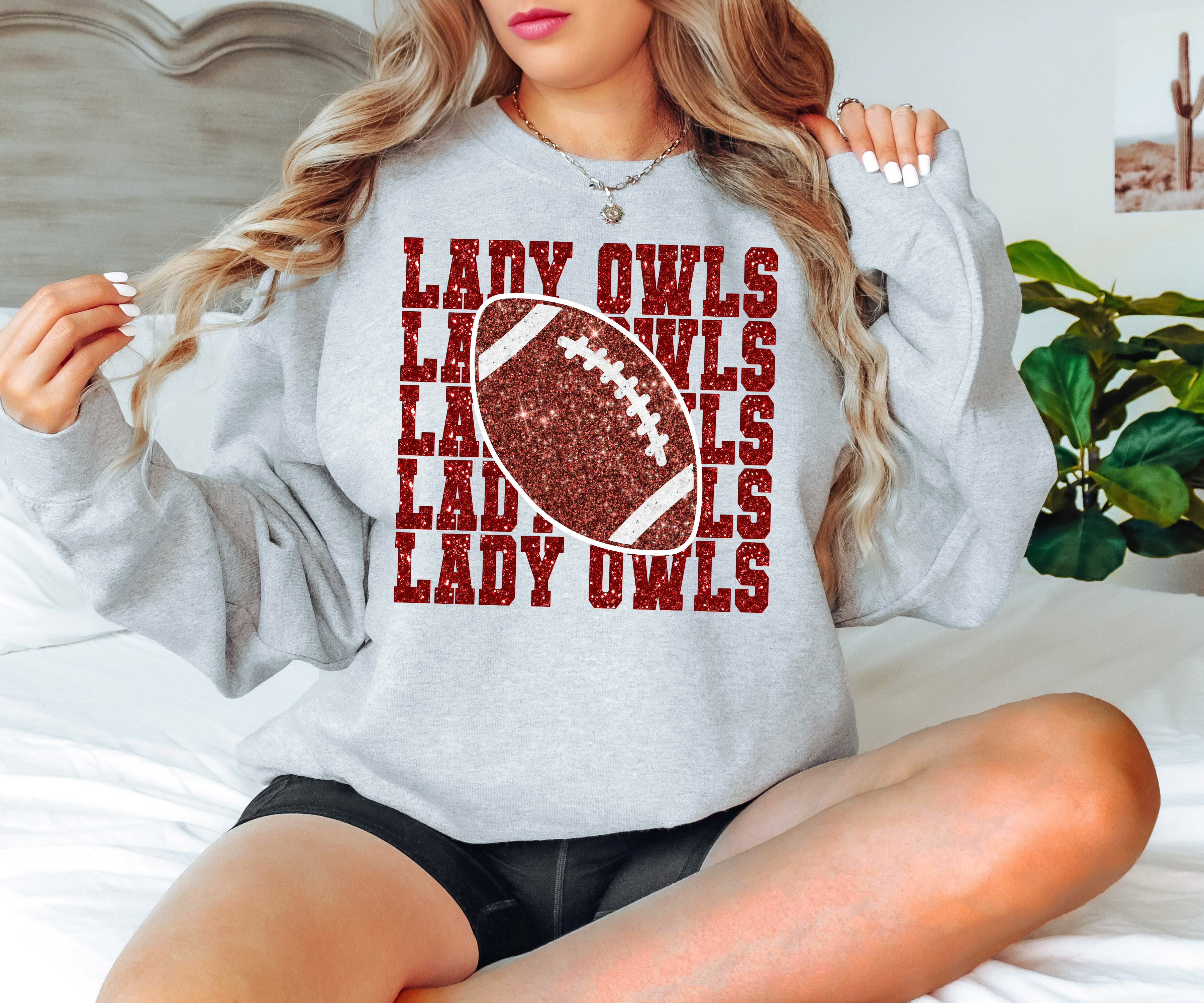 Ooltewah Lady Owls Repeat Glitter Effect DTF Print
