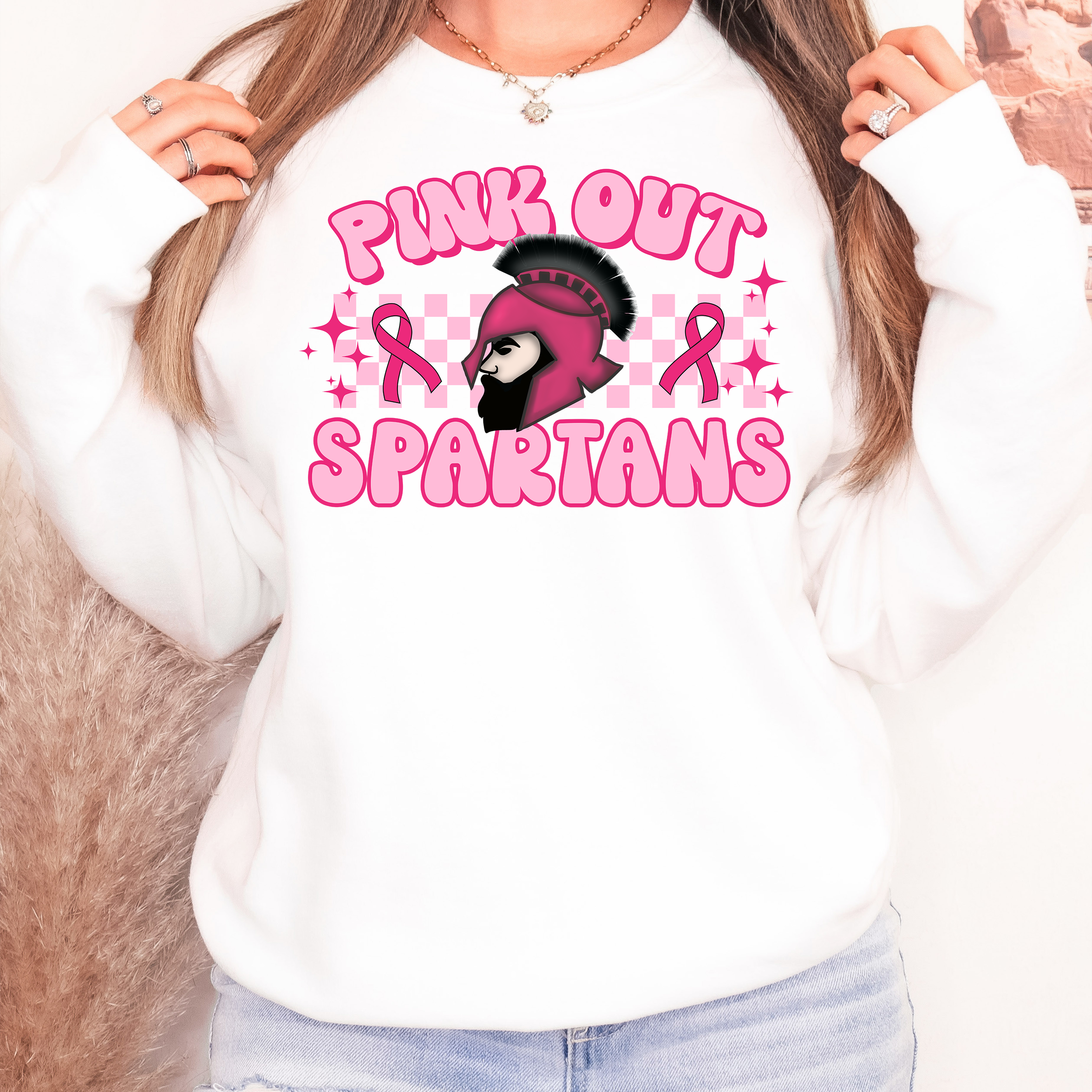 Pink Out Spartans Checker DTF Print