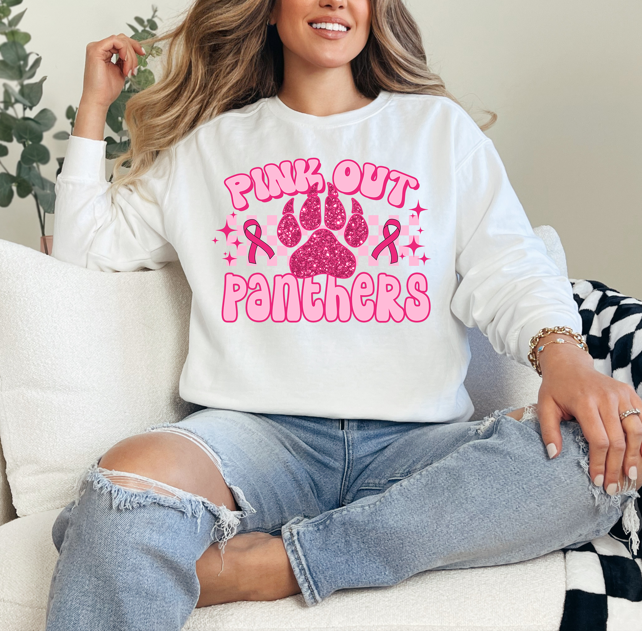 Pink Out Panthers Glitter Effect Checker DTF Print