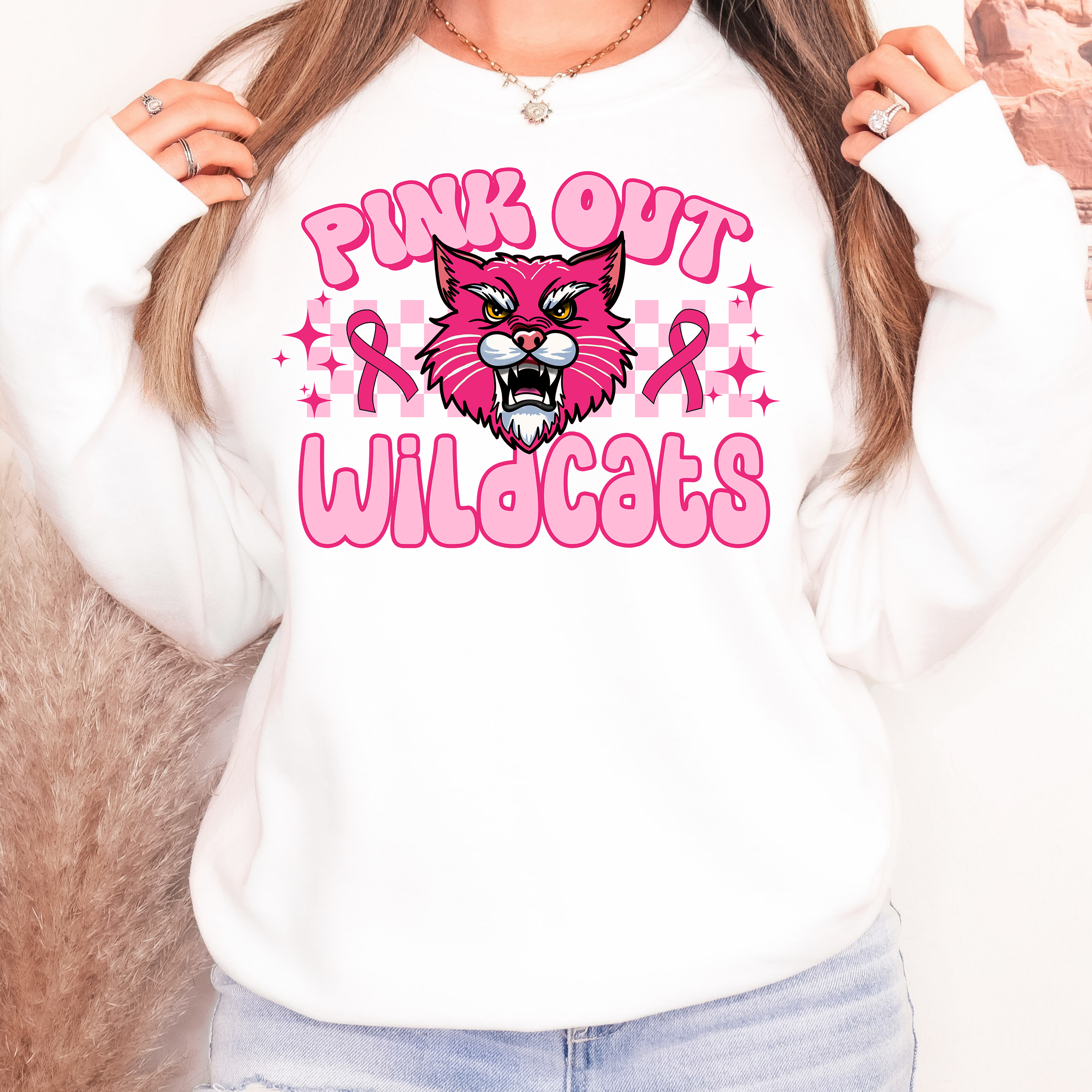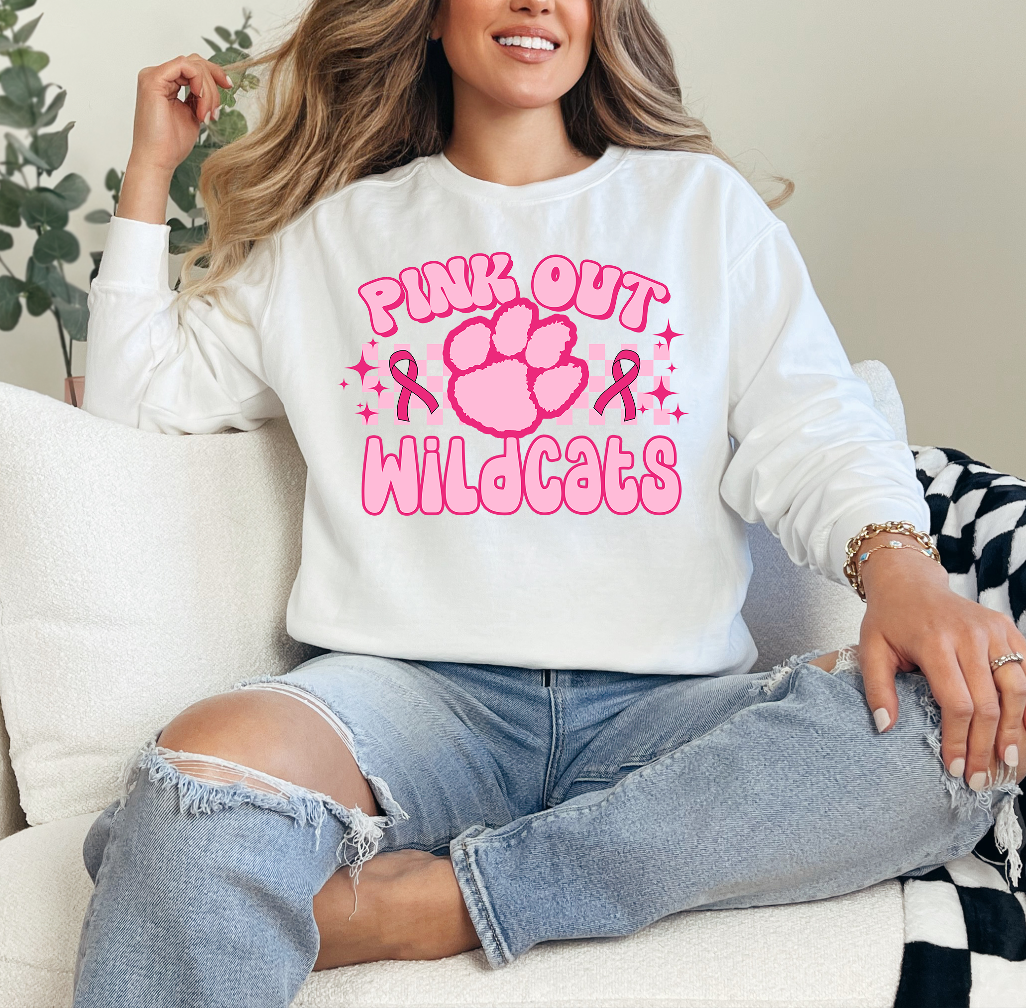 Pink Out Wildcats Checker DTF Print