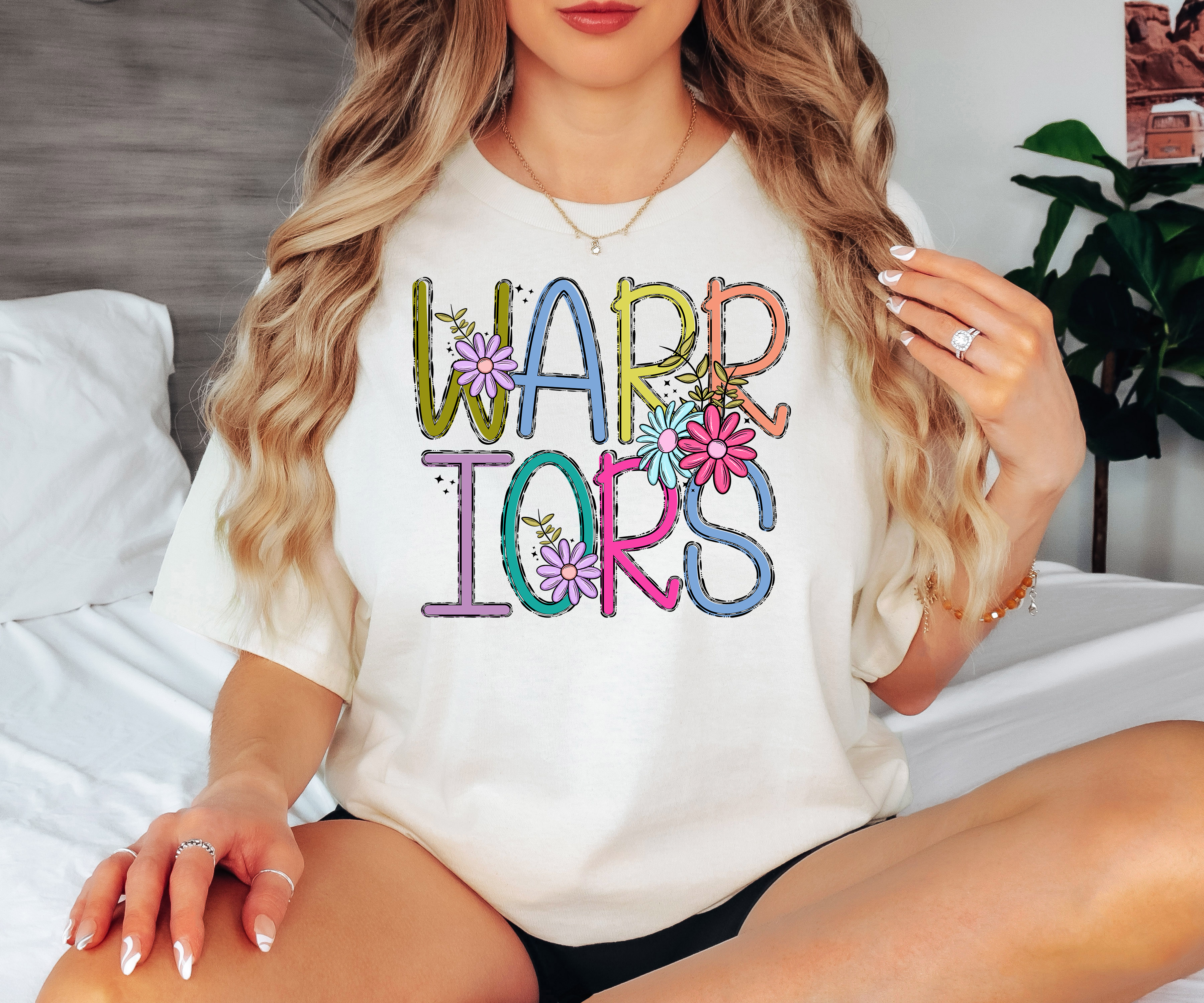 Warriors Skinny Doodle Flowers DTF Print