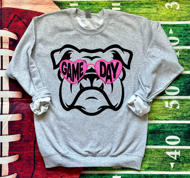 Bulldog Game Day Glitter Effect Glasses DTF Print