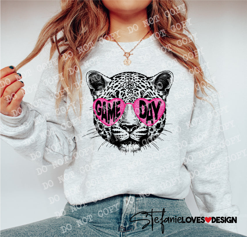 Leopard Game Day Glitter Effect Glasses DTF Print
