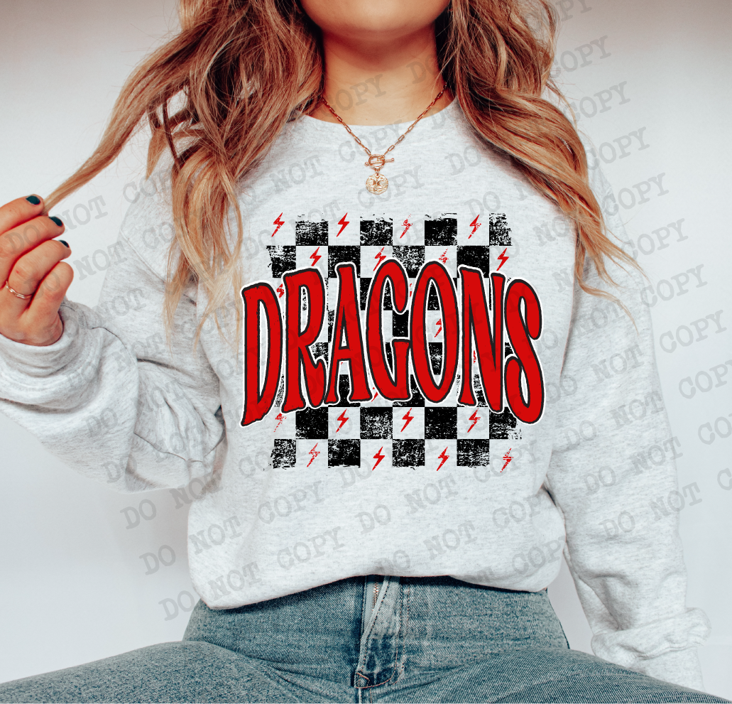 Distressed Dragons Checker DTF Print