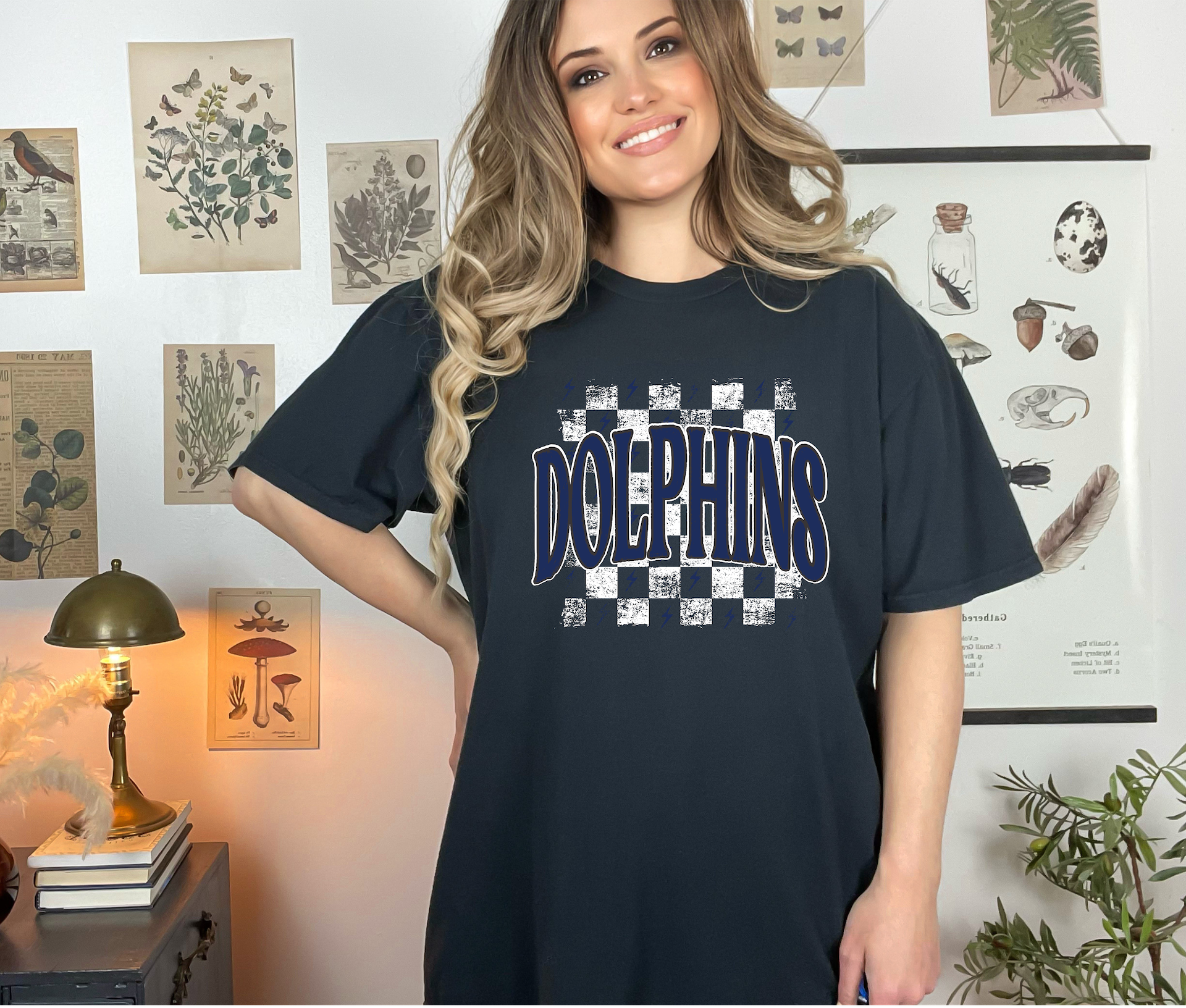 Distressed Dolphins Checker DTF Print