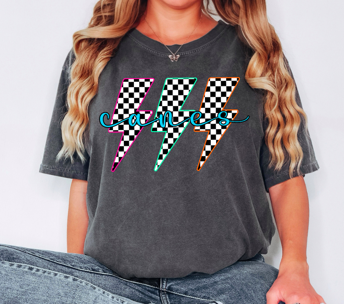 Chaos Retro Bolt Checker Teams Neon Outline DTF Print
