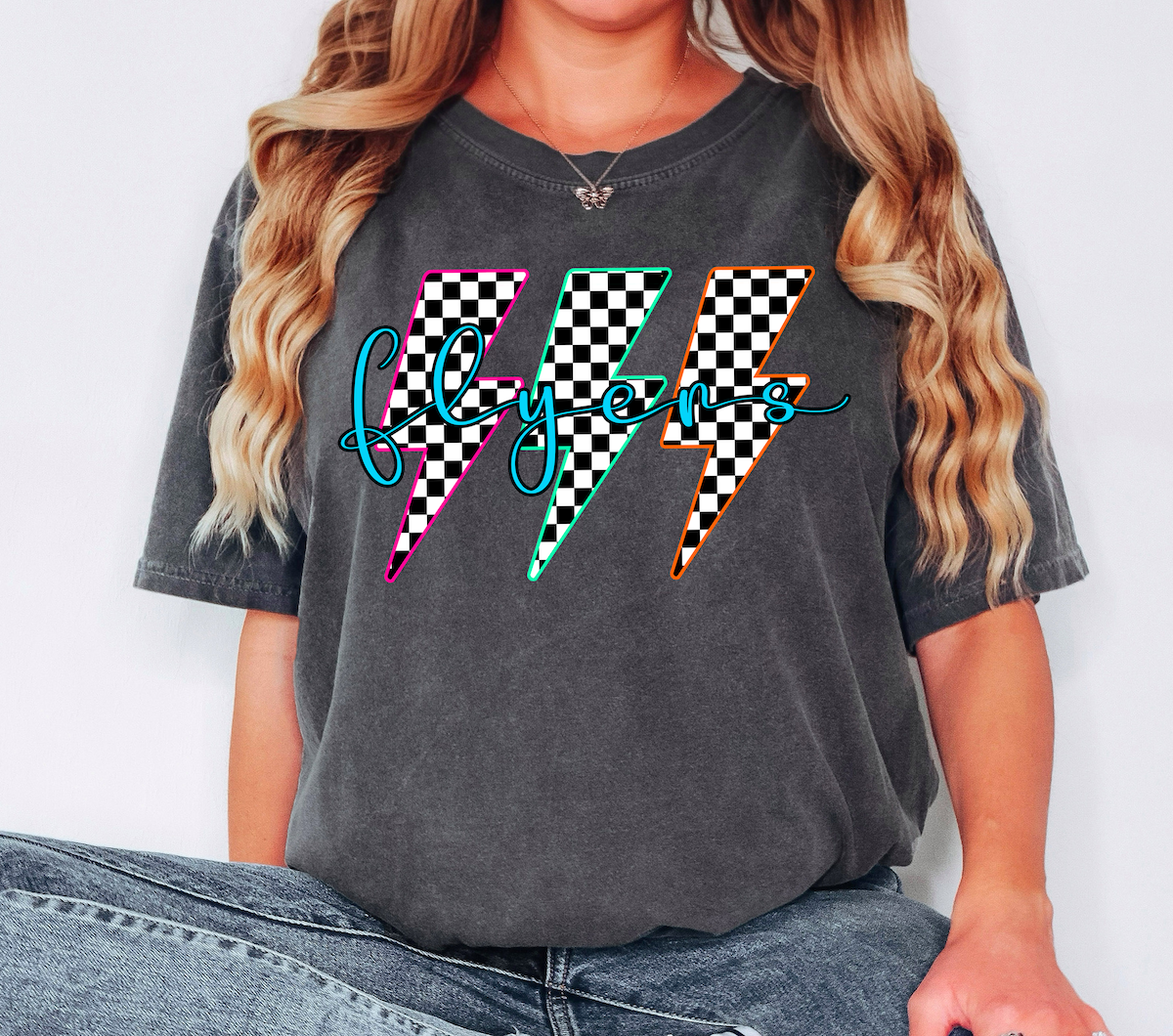 Flyers Retro Bolt Checker Teams Neon Outline DTF Print