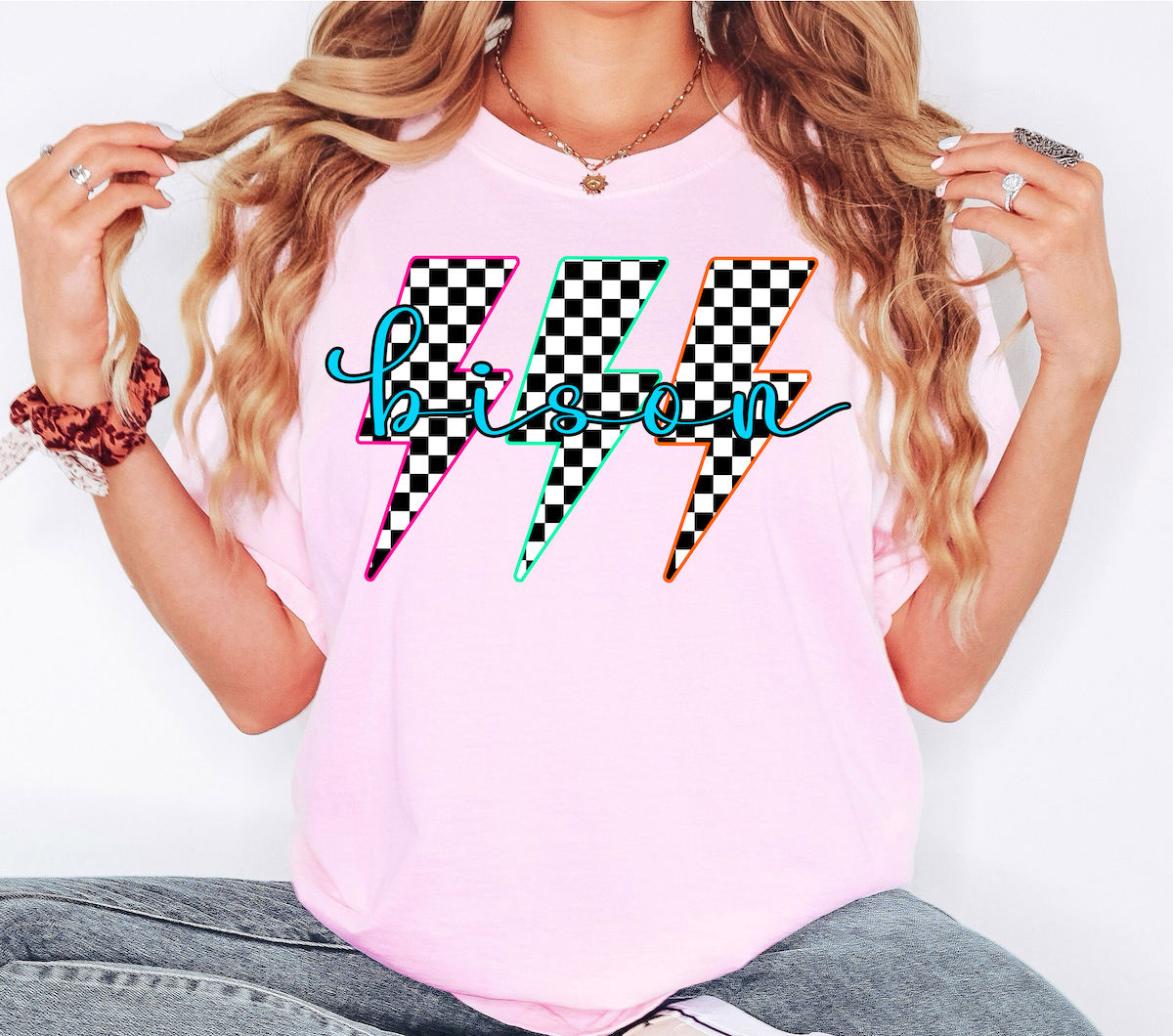 Bison Retro Bolt Checker Teams Neon Outline DTF Print