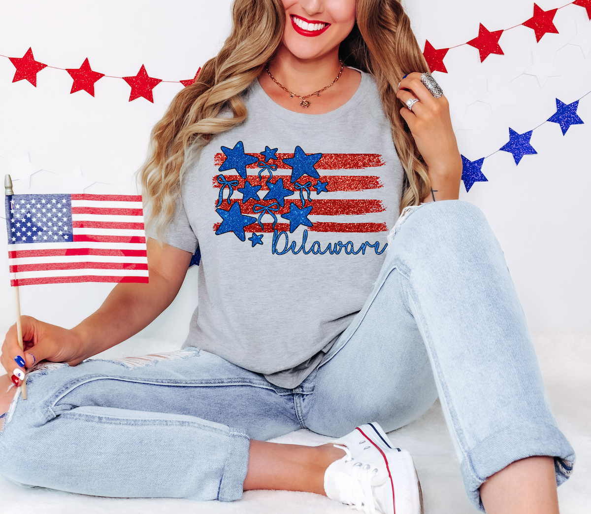 Delaware Brush Stroke Flag and Bows DTF Print
