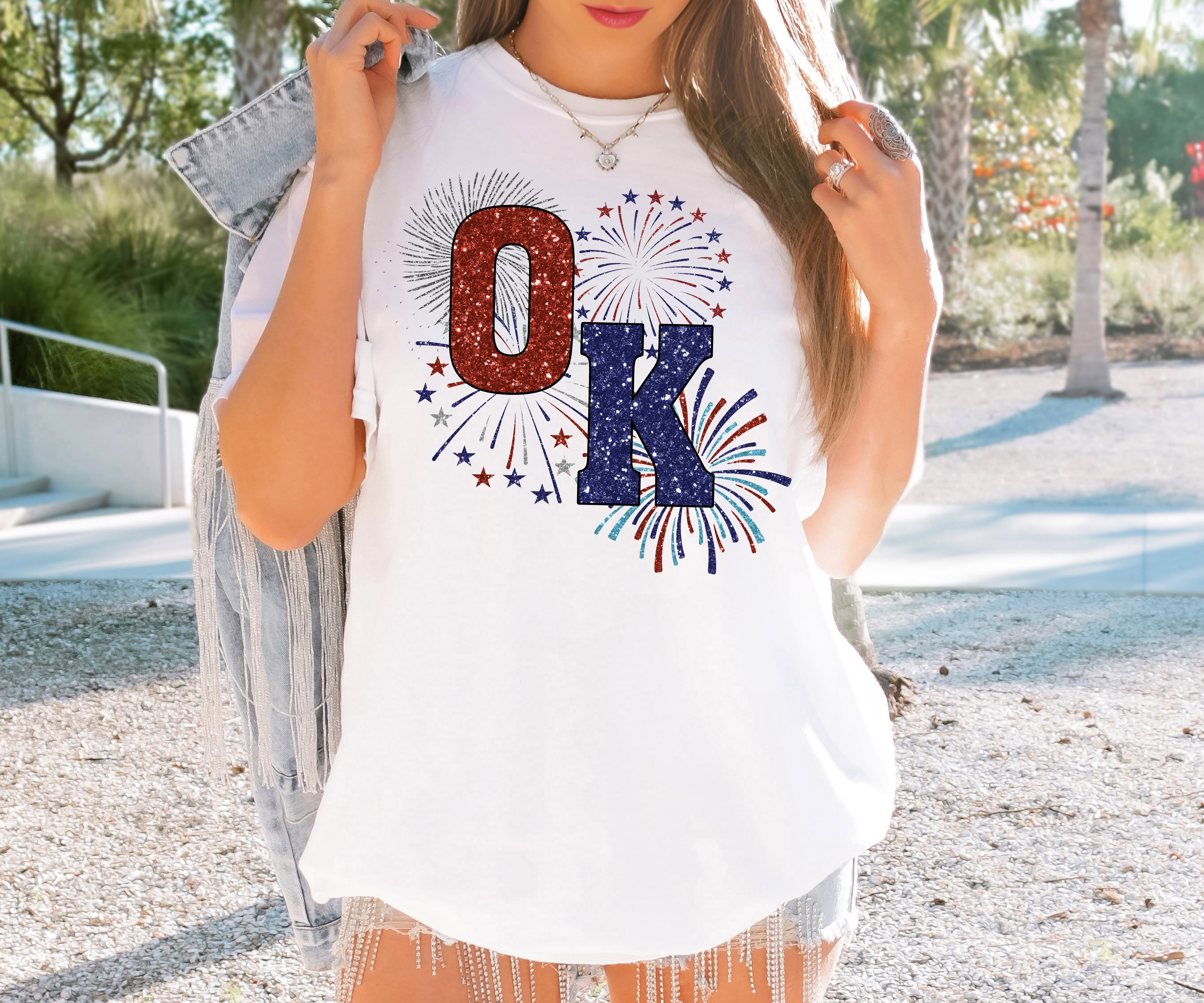 Fireworks OK Oklahoms Faux Glitter DTF Print