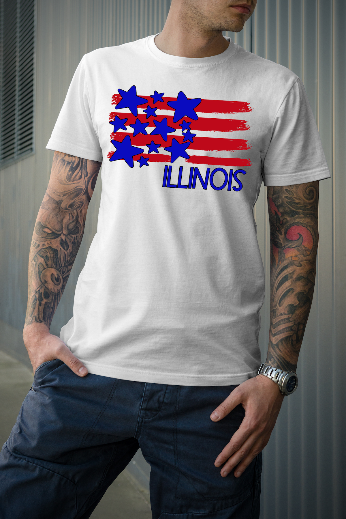 Illinois Plain Flag with Stars and Stripes DTF Print